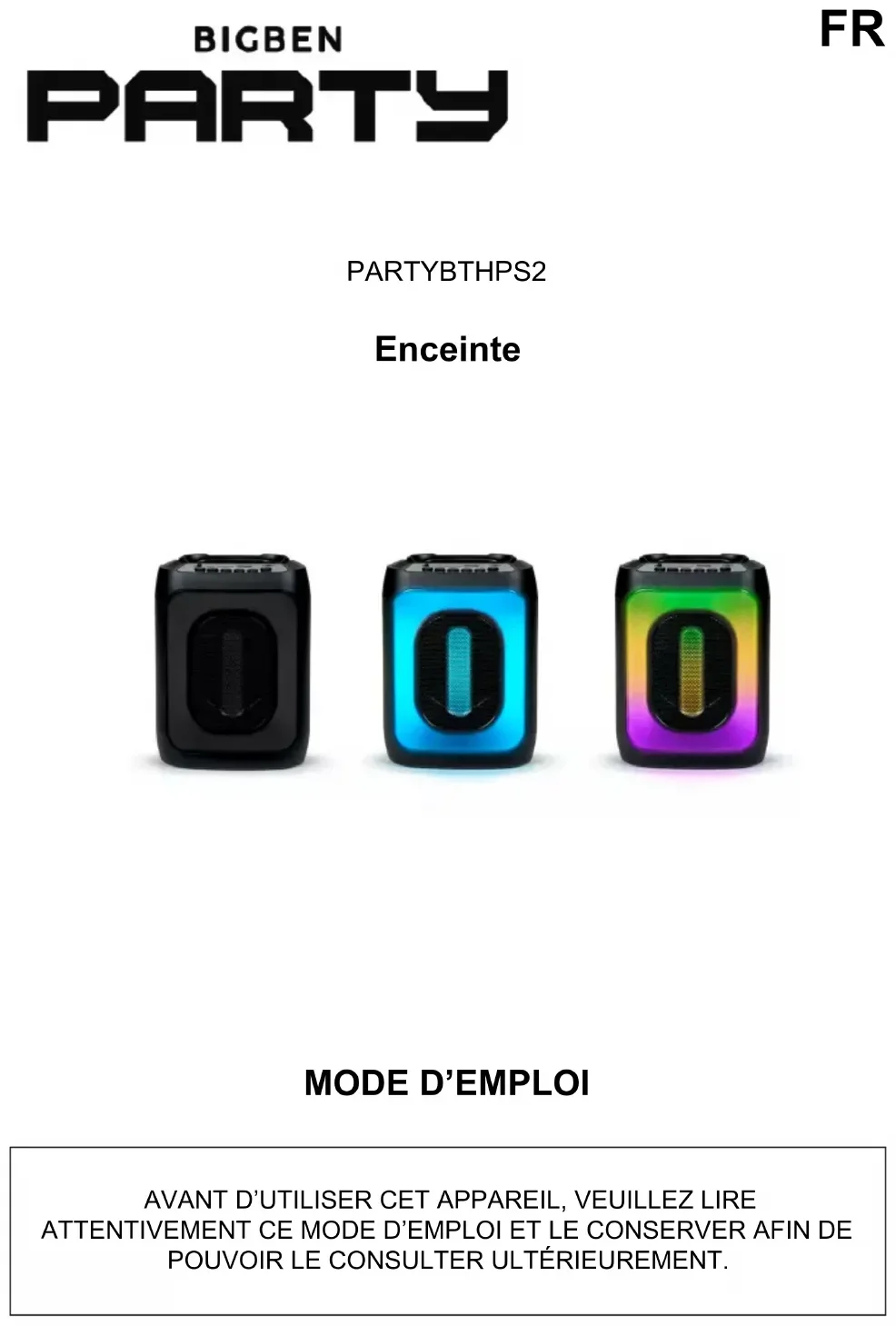 Retrouvez gratuitement la notice de l'appareil PARTYBTHPS2 BIGBEN au format PDF.