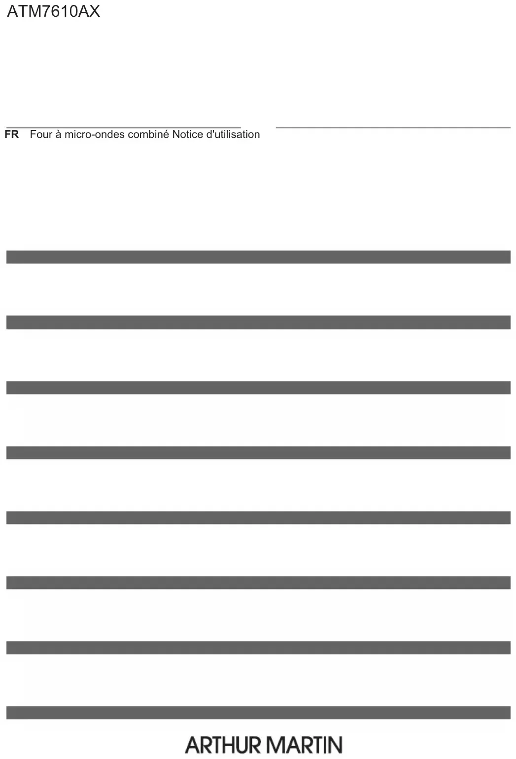 ATM7610AX FR Four à micro-ondes combiné Notice d'utilisationTABLE DES MATIÈRES Information sur la sécurité 2 Consignes de sécurité 5 Description de l'appareil 8 Bandeau de commande 9 Avant la première utilisation 10 Utilisation quotidienne 10 Fonctions de l'horloge 12 Utilisation des accessoires 15 Fonctions supplémentaires 16 Conseils et astuces 17 Entretien et nettoyage 34 Dépannage 36 Rendement énergétique 37 En matière de protection de l'environnement