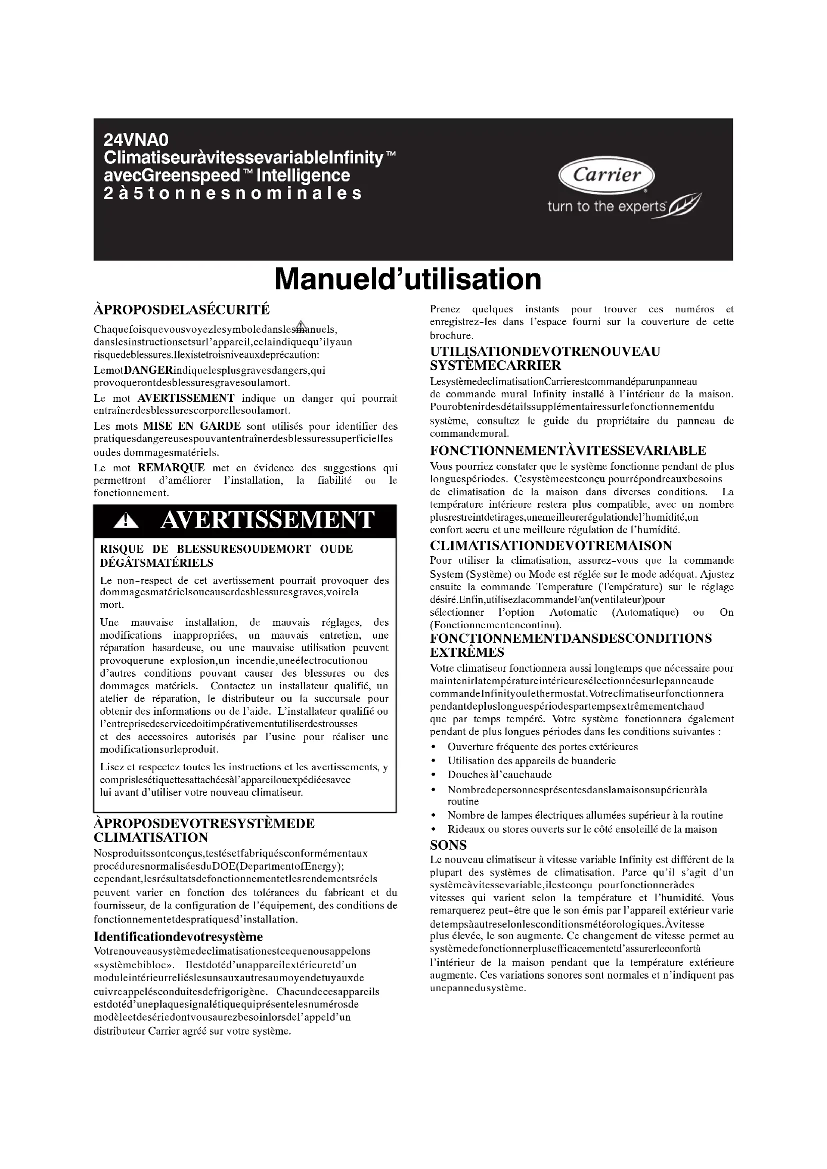 Infinity 24VNA0 - Climatisation CARRIER - Notice d'utilisation et mode d'emploi gratuit