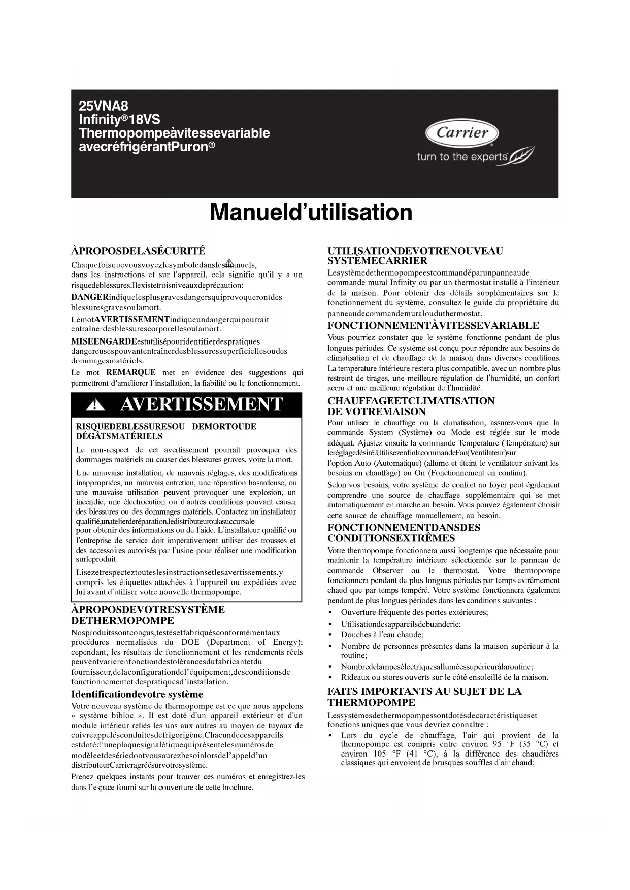Infinity 25VNA8 - Pompe à chaleur CARRIER - Notice d'utilisation et mode d'emploi gratuit