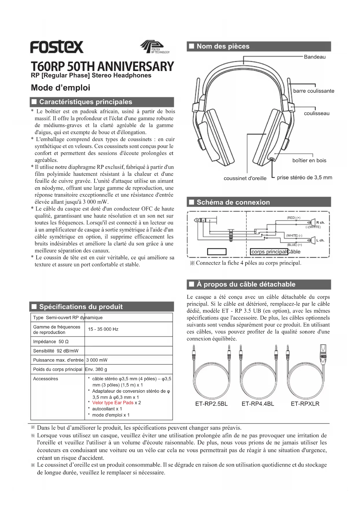 T60RP 50th Anniversary - Ecouteur FOSTEX - Notice d'utilisation et mode d'emploi gratuit