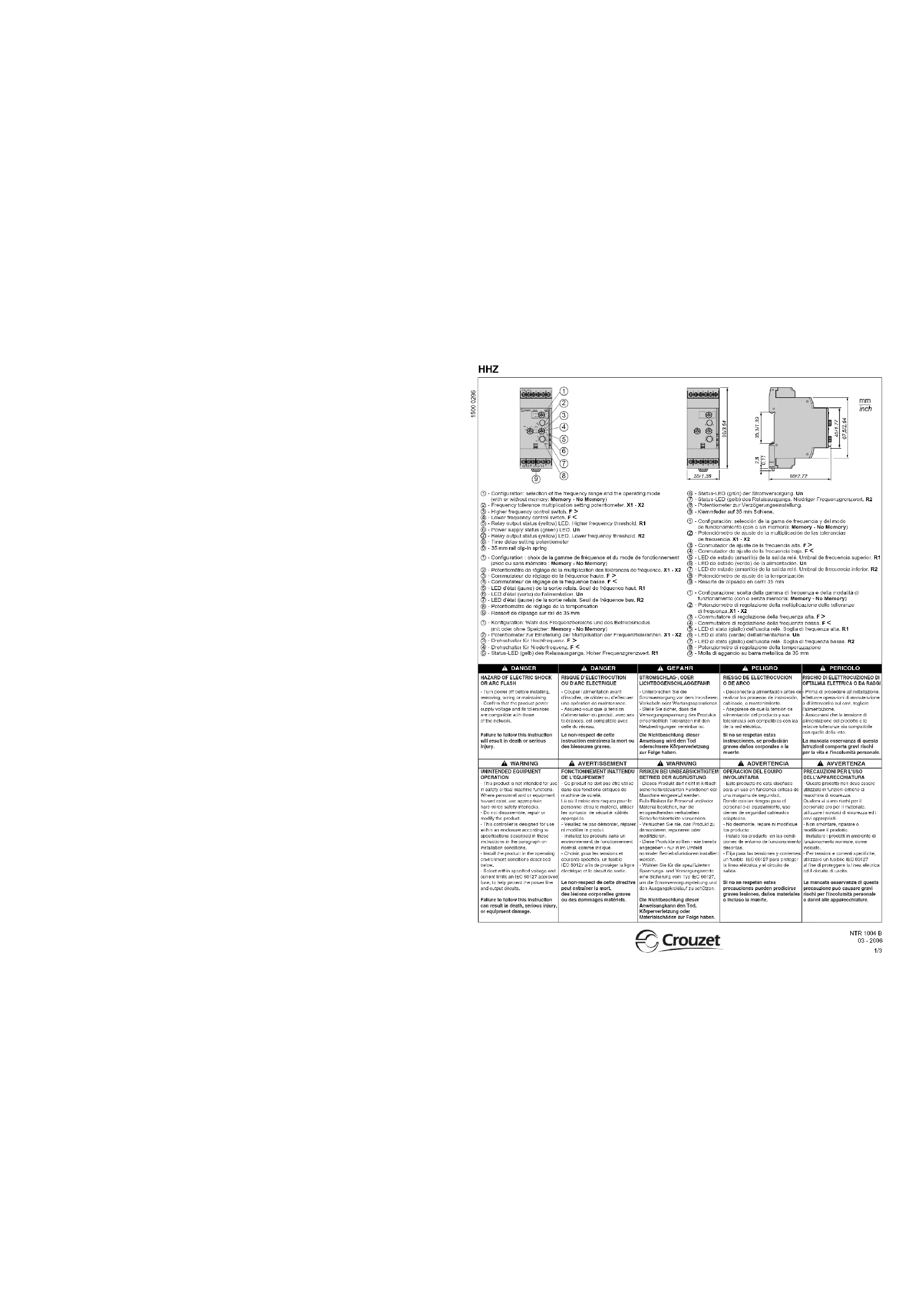Retrouvez gratuitement la notice de l'appareil HHZ Crouzet au format PDF.