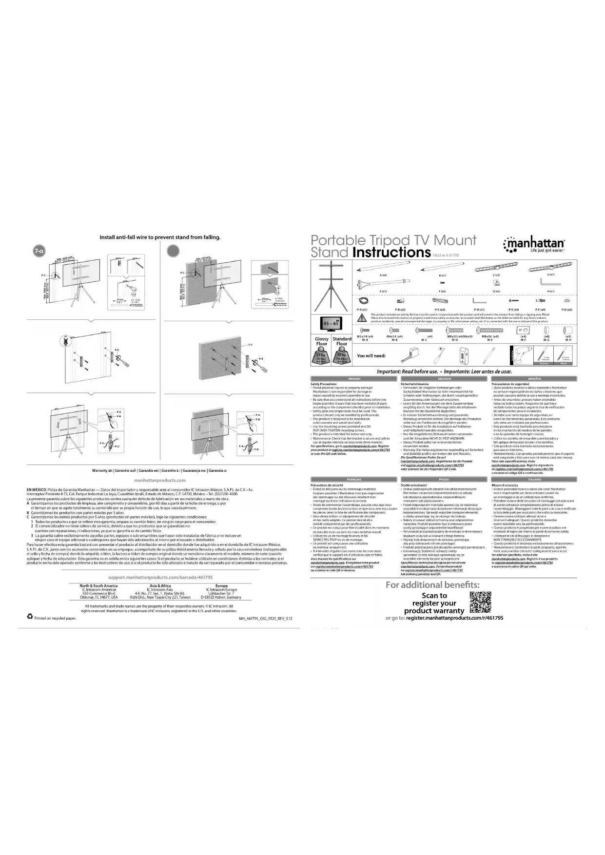 Téléchargez la notice de votre Support écran plat au format PDF gratuitement ! Retrouvez votre notice 461795 - MANHATTAN et reprennez votre appareil électronique en main. Sur cette page sont publiés tous les documents nécessaires à l'utilisation de votre appareil 461795 de la marque MANHATTAN.
