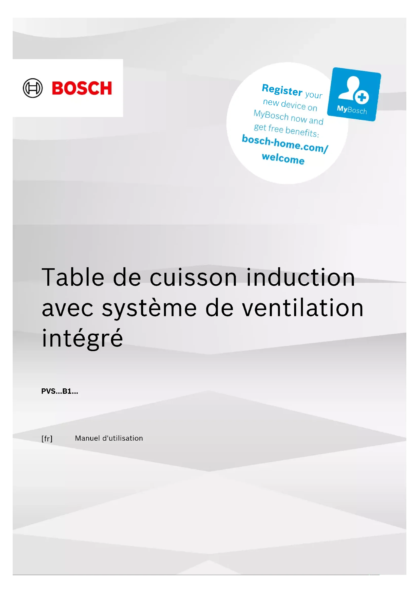 Register your new device on MyBosch now and get free benefits: bosch-home.com/ welcome Table de cuisson induction avec système de ventilation intégré PVS...B1... [fr] Manuel d'utilisationfr Sécurité