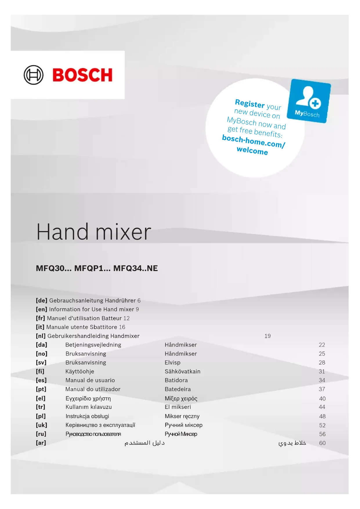 Retrouvez gratuitement la notice de l'appareil CleverMixx MFQ3425NE BOSCH au format PDF.