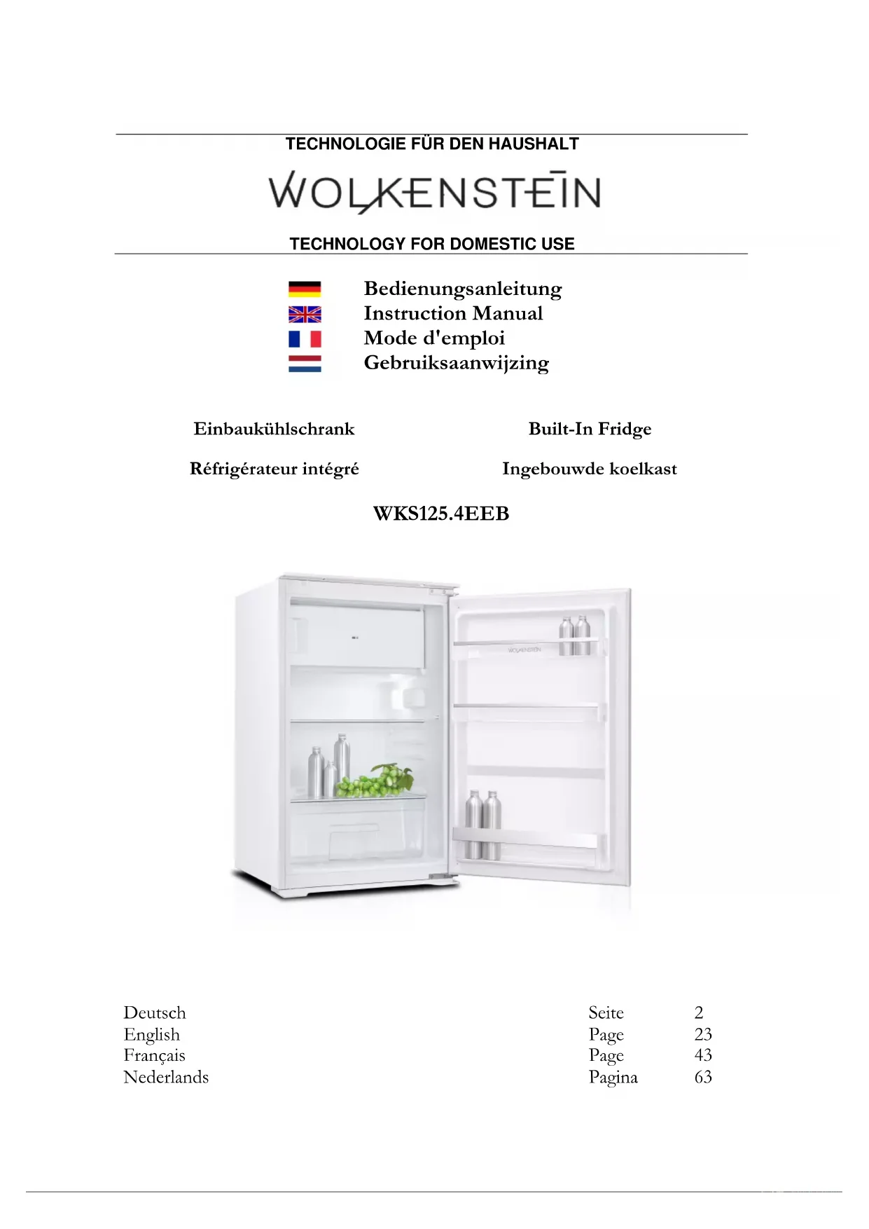 WKS125.4EEB - Réfrigérateur Wolkenstein - Notice d'utilisation et mode d'emploi gratuit