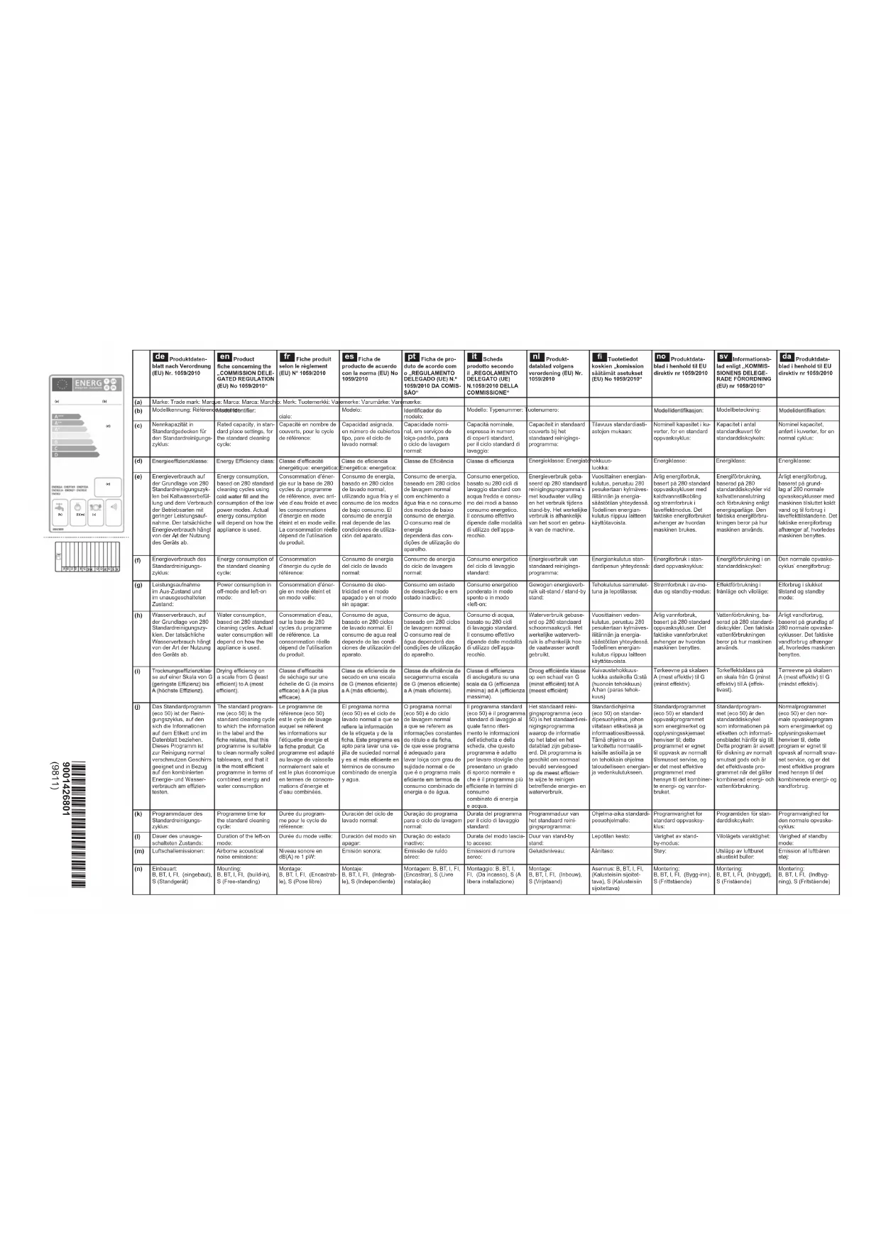 | Fonctionnalités supplémentaires | Départ différé, AquaStop, Système de séchage Zeolith |