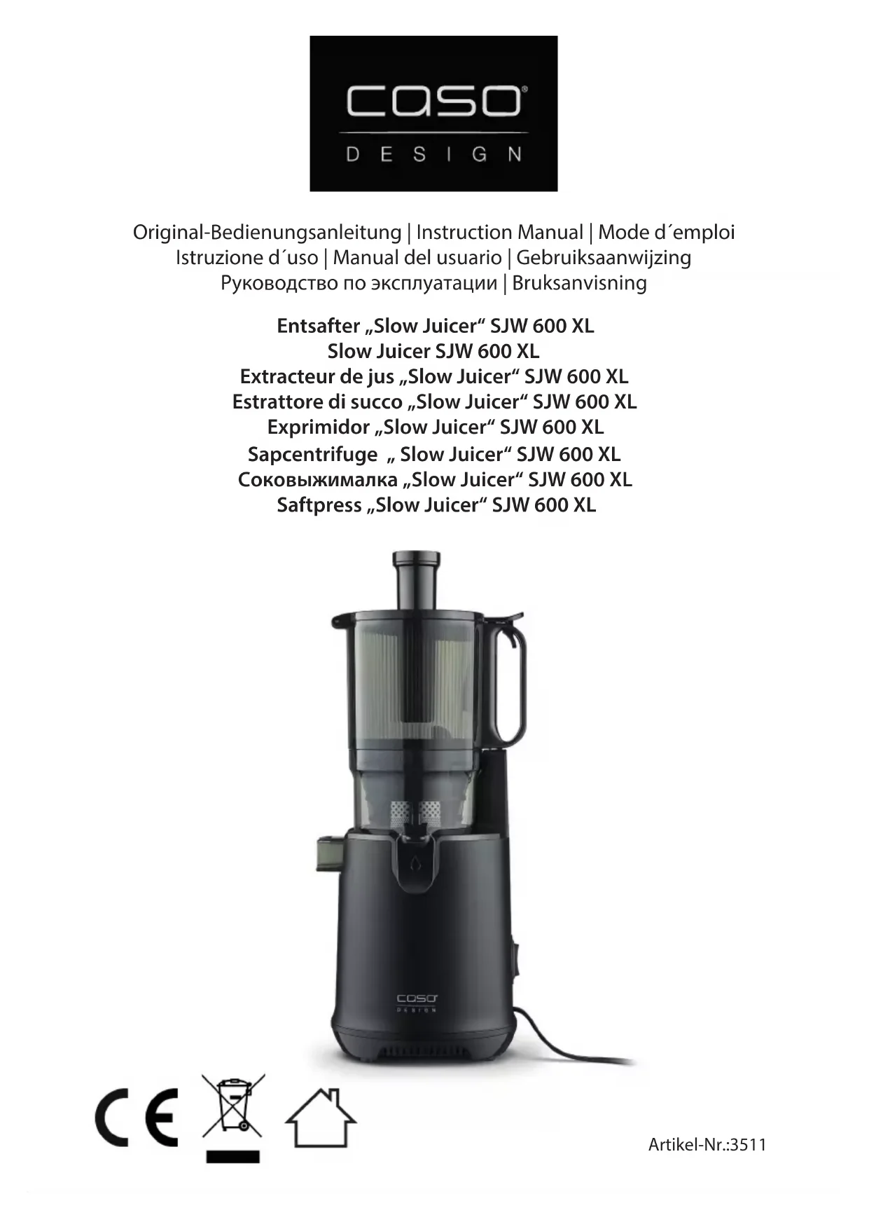 SJW 600 XL - Extracteur de jus CASO - Notice d'utilisation et mode d'emploi gratuit
