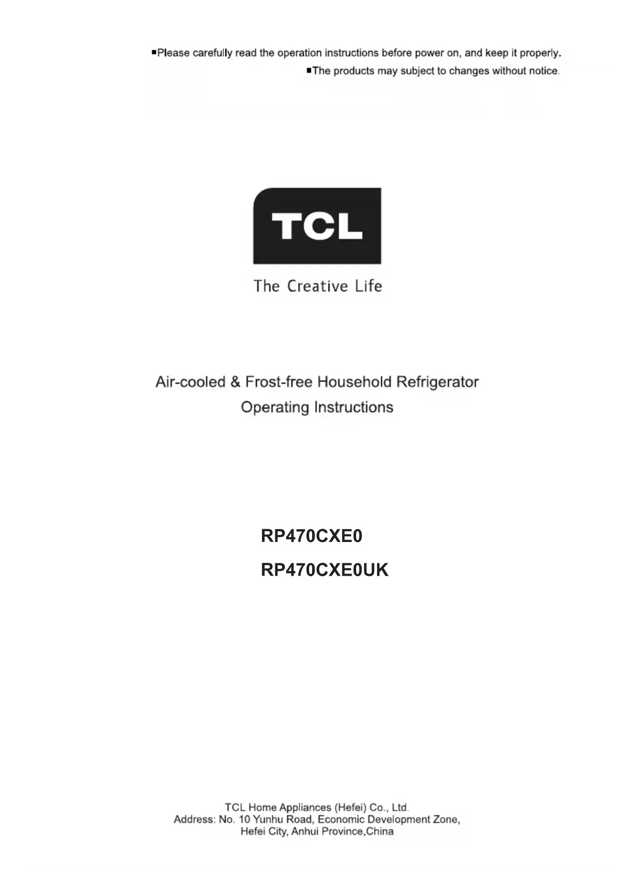 RP470CXE1UK - Réfrigérateur TCL - Notice d'utilisation et mode d'emploi gratuit