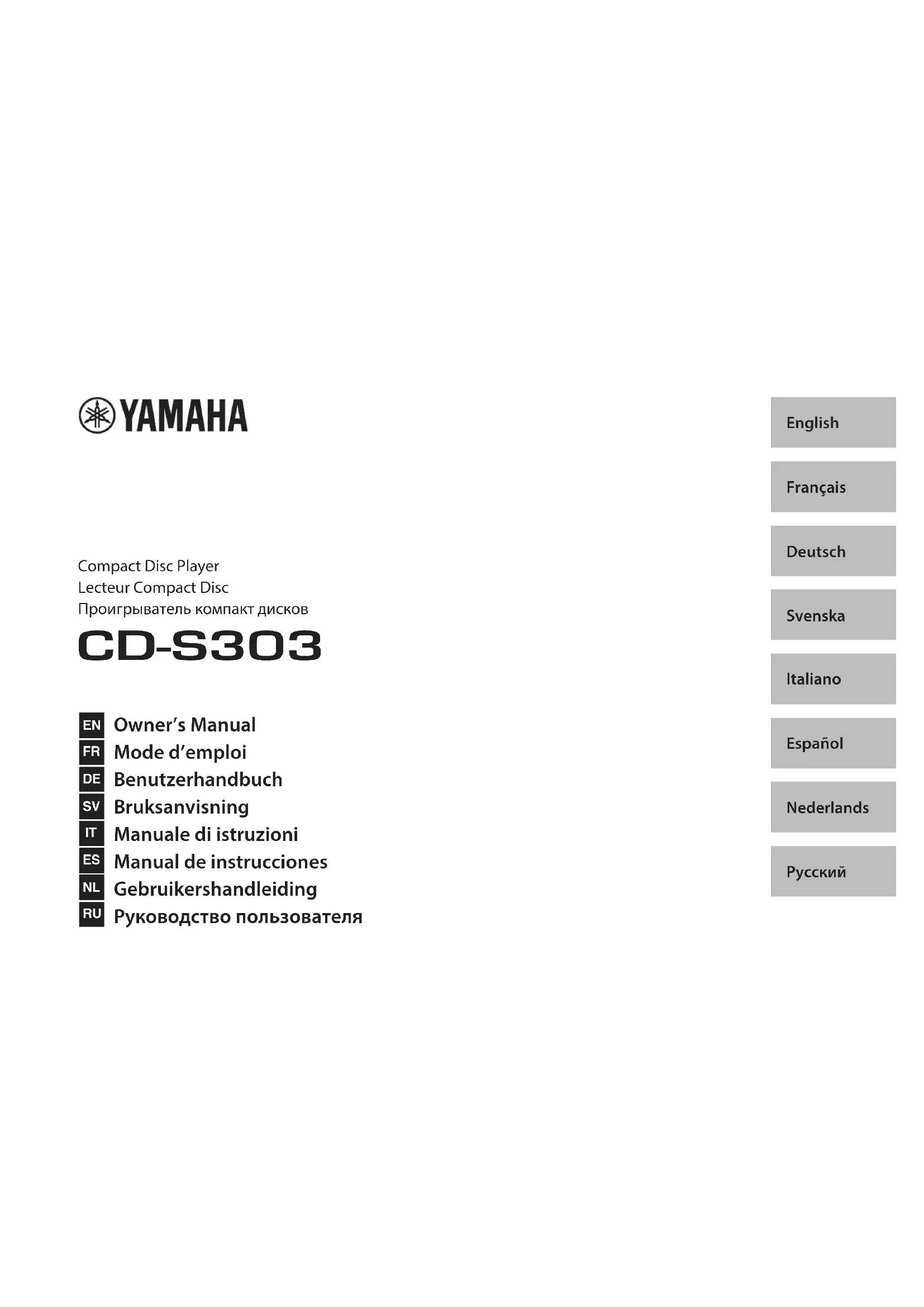 - USB × 1 (USB2.0)44 Fr Reportez-vous au tableau suivant si l’appareil ne fonctionne pas correctement. Si l’anomalie constatée ne figure pas ci-dessous, ou si la correction suggérée reste sans effet, mettez l’appareil hors tension en appuyant sur A (alimentation) en face avant, débranchez le cordon d’alimentation et prenez contact avec un revendeur ou un centre SAV Yamaha agréé. Résolution des problèmes Anomalies Causes possibles Solution Page Impossible de mettre l’appareil sous tension en appuyant sur son interrupteur d’alimentation. Le cordon d’alimentation est peut-être mal raccordé. Branchez fermement le cordon d’alimentation à une prise secteur. 32 Le tiroir de disque ne se referme pas complètement. Un corps étranger se trouve à l’intérieur du tiroir de disque. Vérifiez le tiroir de disque et retirez-en tout corps étranger. — Impossible de lire le disque chargé. Le disque est rayé. Utilisez un autre disque. — De la condensation s’est formée sur la lentille à l’intérieur de l’appareil. Mettez l’appareil sous tension et attendez 20 à 30 minutes avant d’essayer à nouveau de lire le disque.