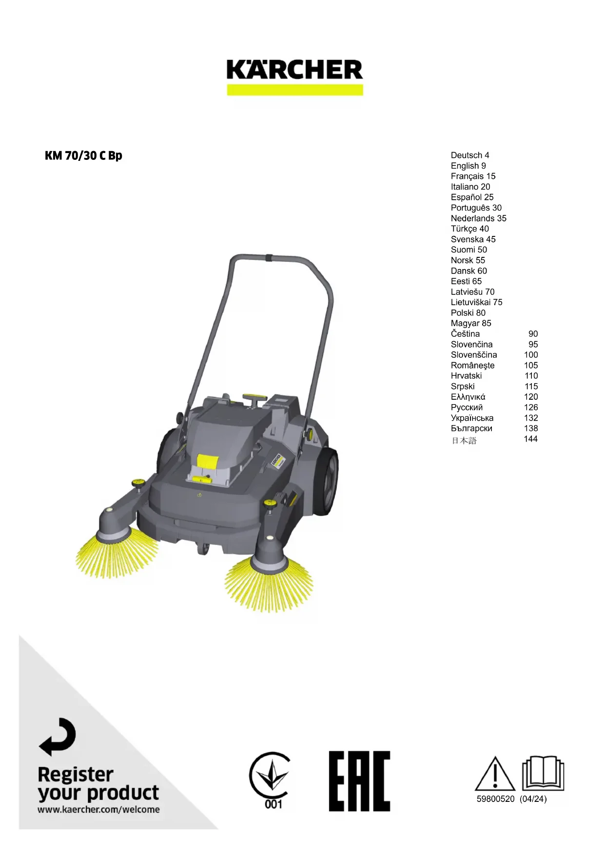 Retrouvez gratuitement la notice de l'appareil KM 70/25 C Bp Kärcher au format PDF.