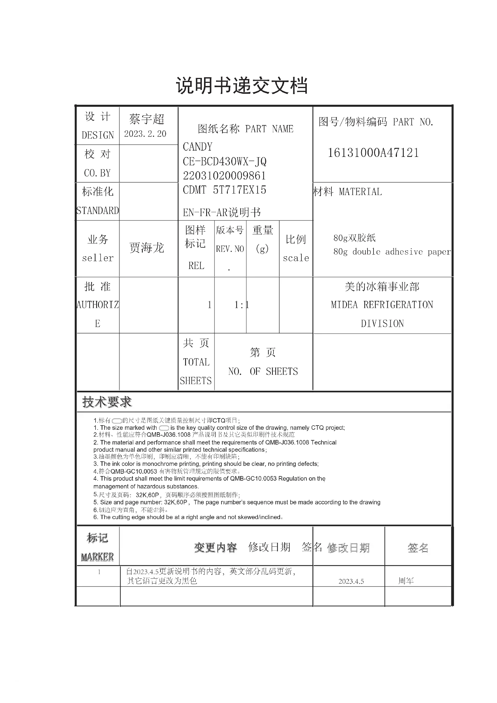 CDMT 5T717EX15 - Réfrigérateur CANDY - Notice d'utilisation et mode d'emploi gratuit