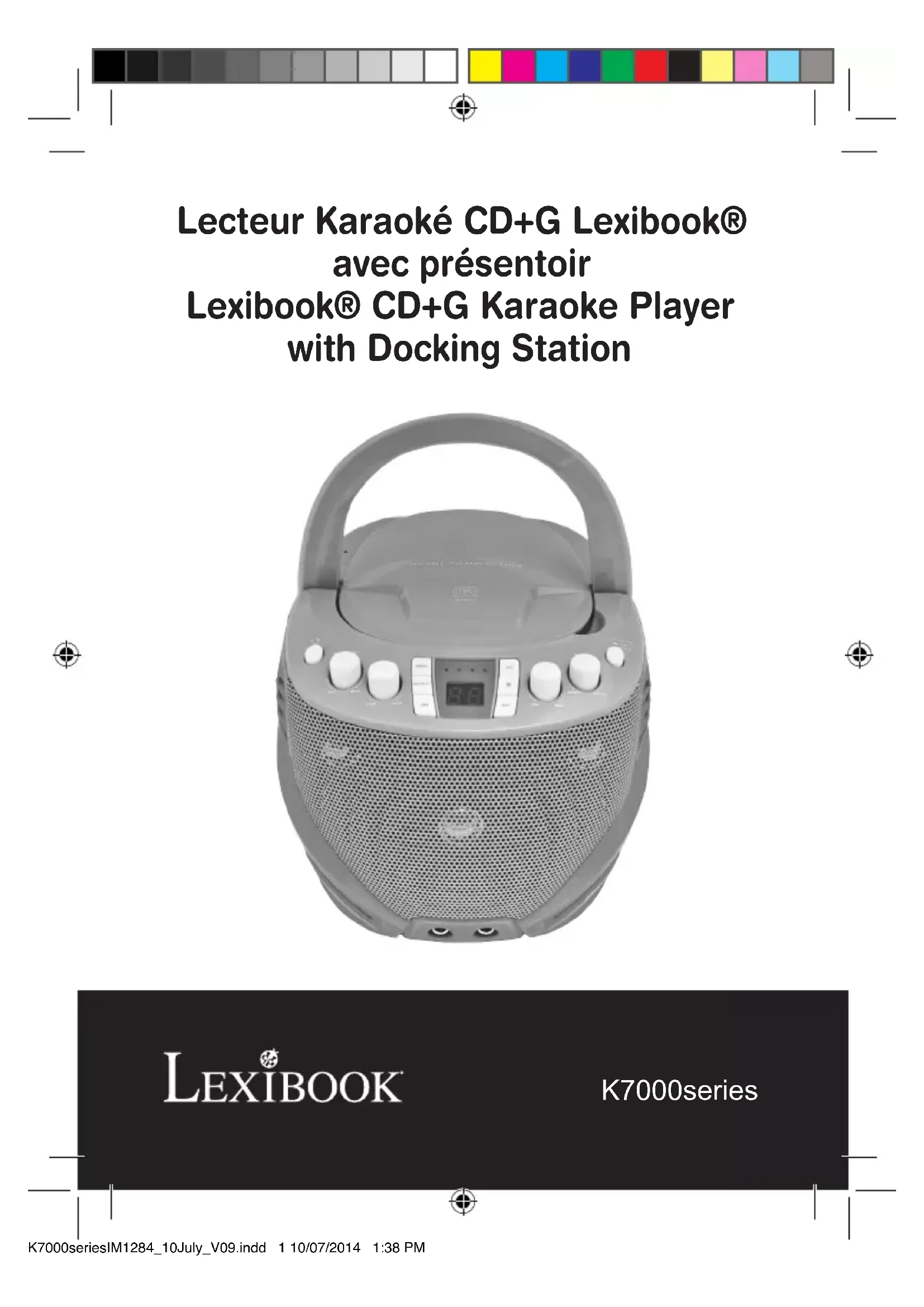 Lecteur Karaoké CD+G Lexibook® avec présentoir Lexibook® CD+G Karaoke Player with Docking Station K7000series K7000seriesIM1284_10July_V09.indd 1 10/07/2014 1:38 PMFRANÇAIS
