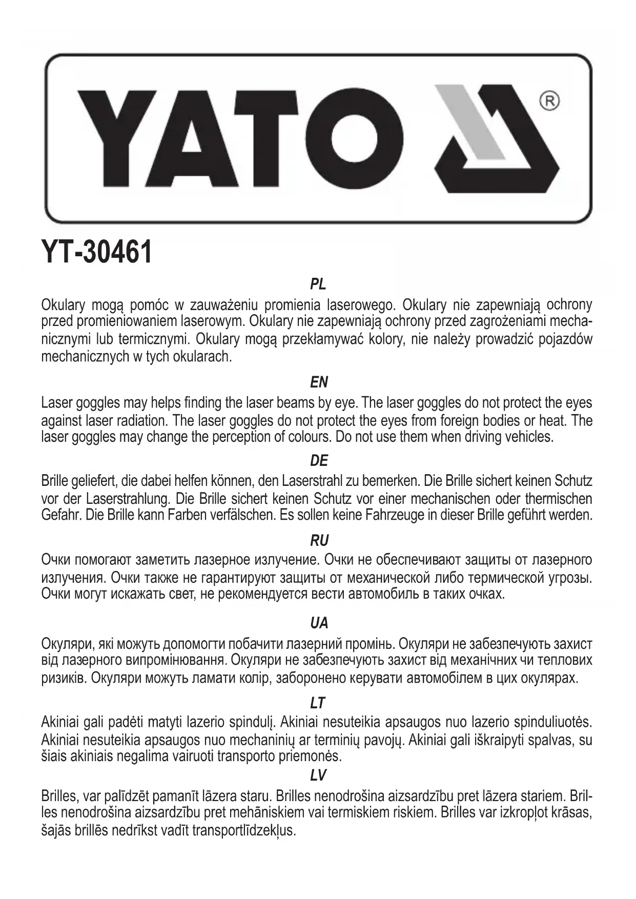 Retrouvez gratuitement la notice de l'appareil YT-30461 Yato au format PDF.
