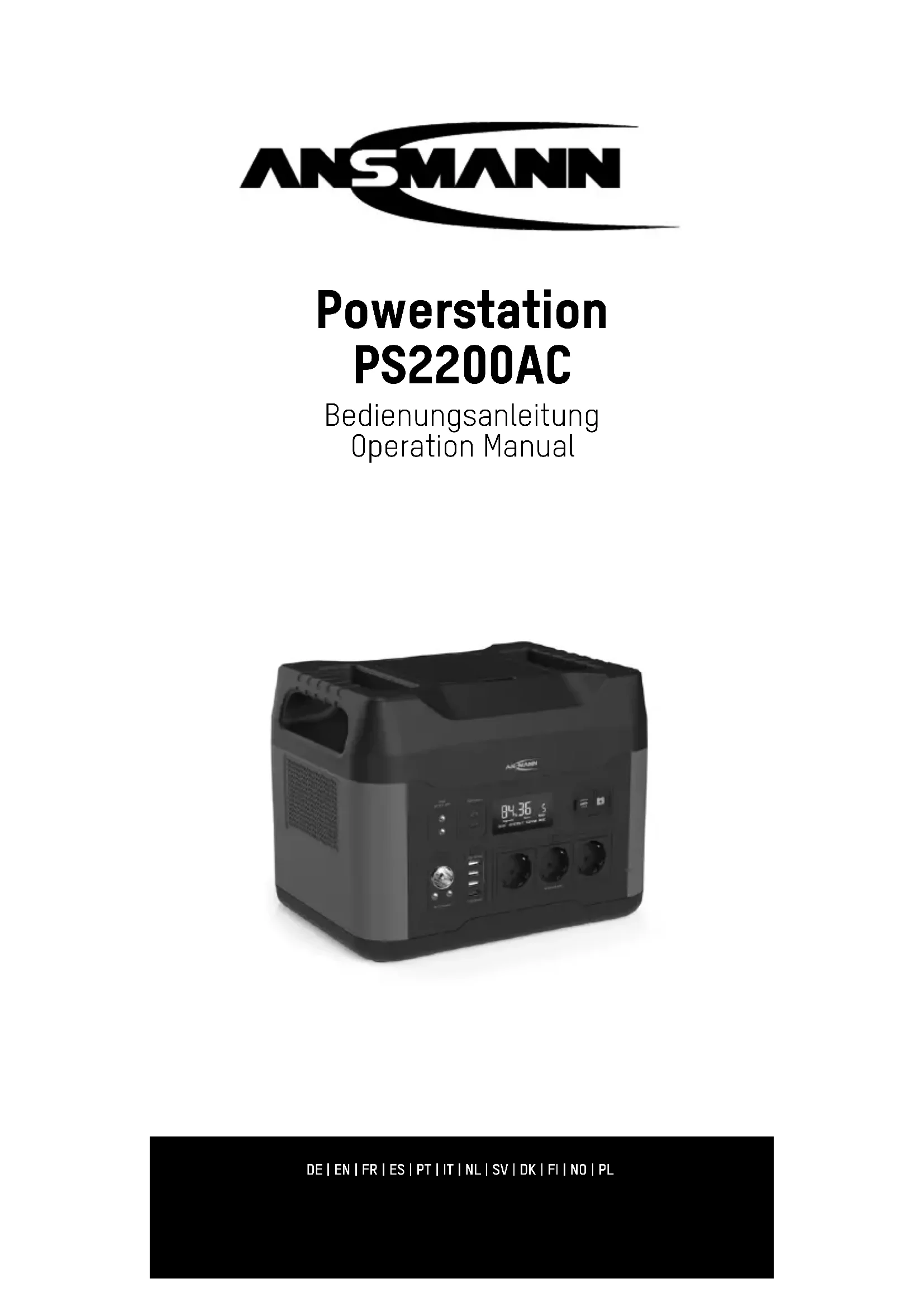 Retrouvez gratuitement la notice de l'appareil Powerstation PS2200AC ANSMANN au format PDF.