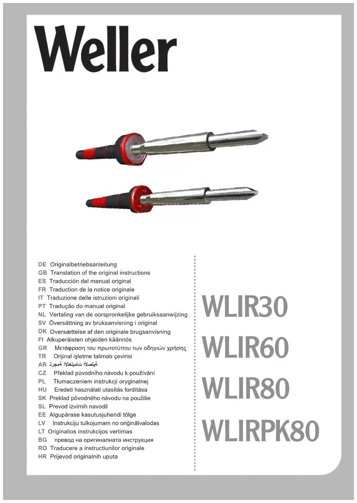 Retrouvez gratuitement la notice de l'appareil WLIRPK80 Weller au format PDF.