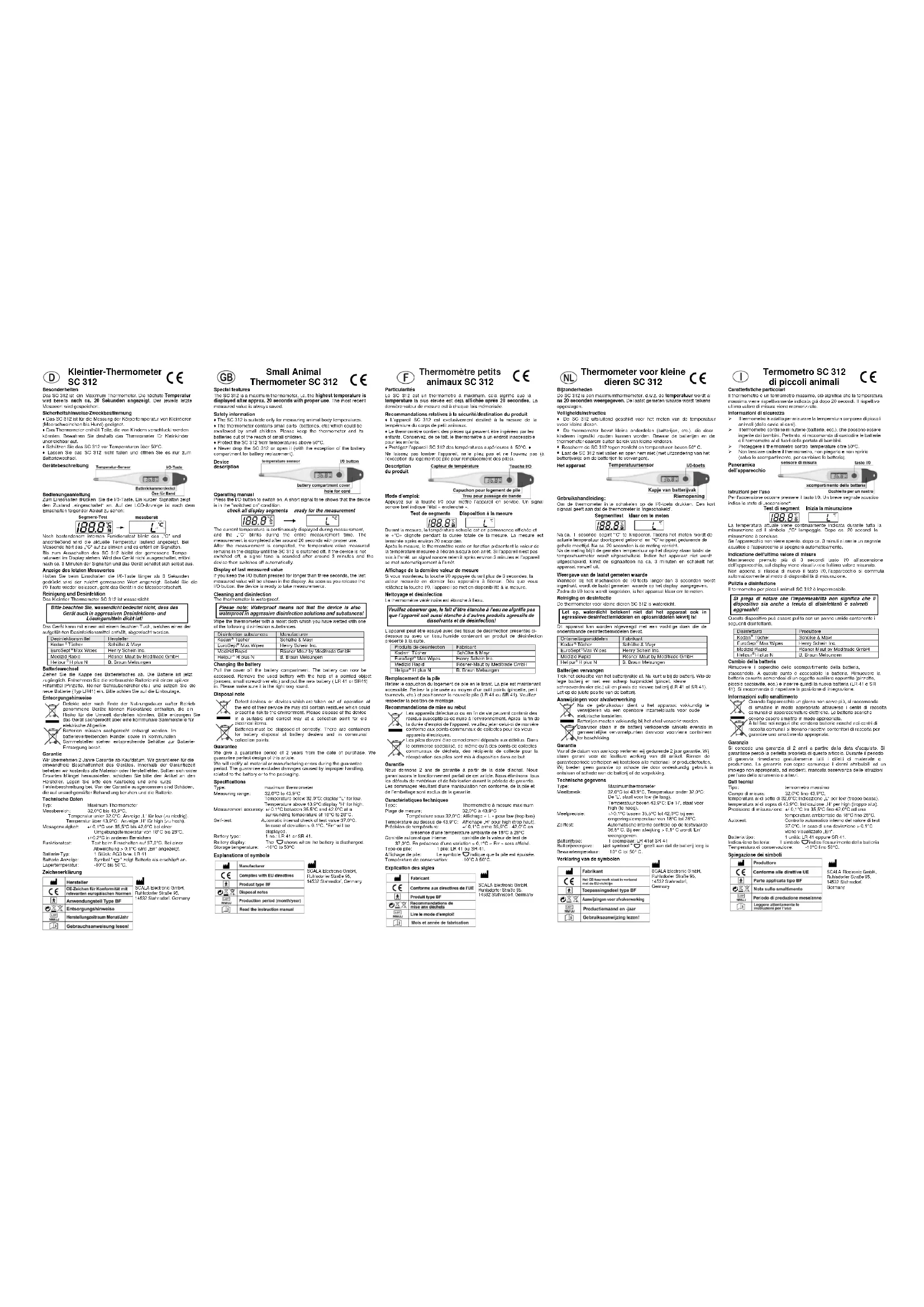 Téléchargez la notice de votre Thermomètre au format PDF gratuitement ! Retrouvez votre notice SC 312 - Scala et reprennez votre appareil électronique en main. Sur cette page sont publiés tous les documents nécessaires à l'utilisation de votre appareil SC 312 de la marque Scala.