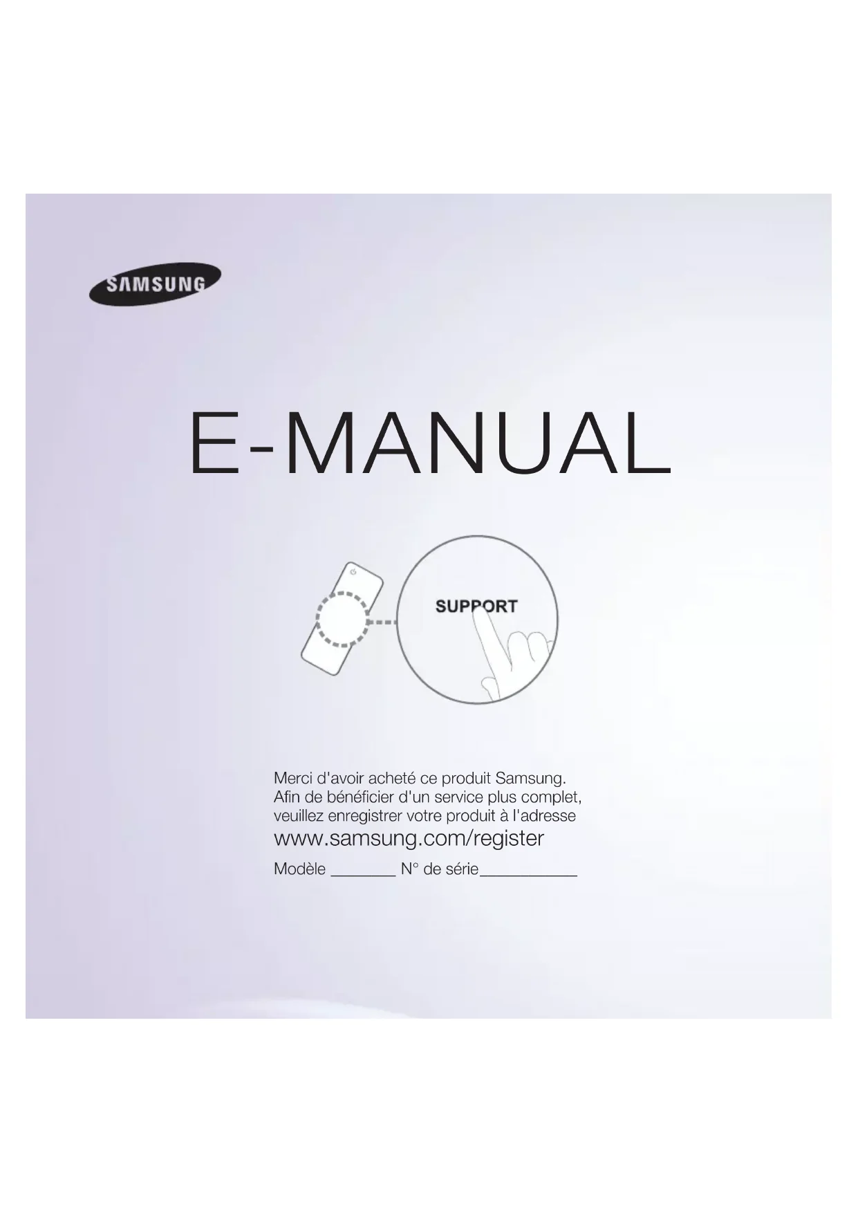 E-MANUAL Merci d'avoir acheté ce produit Samsung. Afin de bénéficier d'un service plus complet, veuillez enregistrer votre produit à l'adresse www.samsung.com/register Modèle ________ N° de série ____________Menu Canal