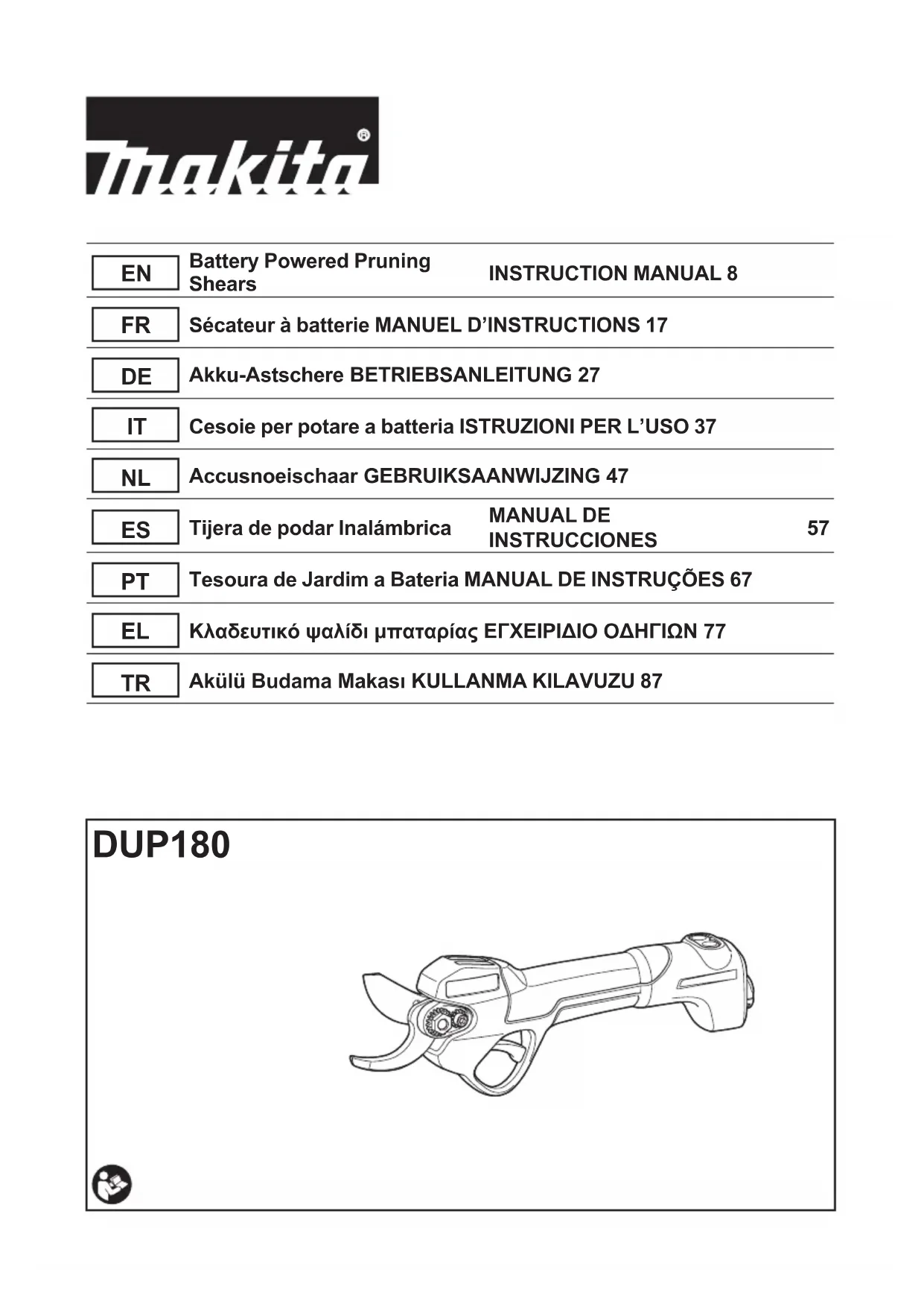 DUP180 - Taille-haies MAKITA - Notice d'utilisation et mode d'emploi gratuit