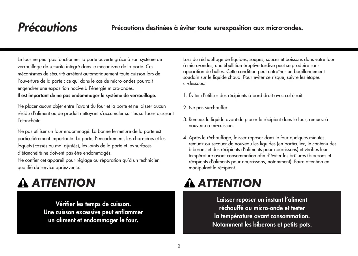 20. Les liquides ou d’autres aliments ne doivent pas être réchauffés dans des