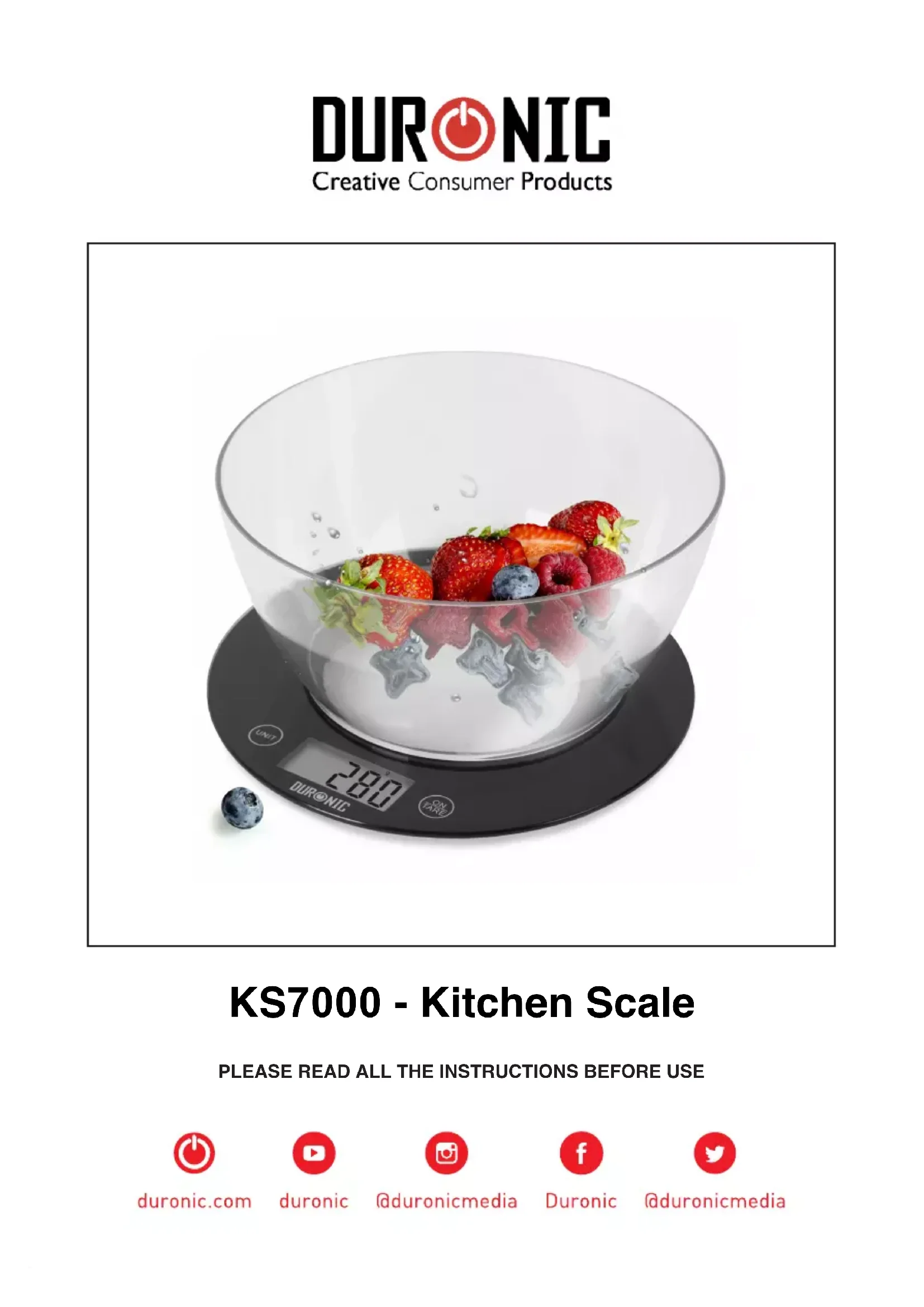 KS7000 - Balances de cuisine Duronic - Notice d'utilisation et mode d'emploi gratuit