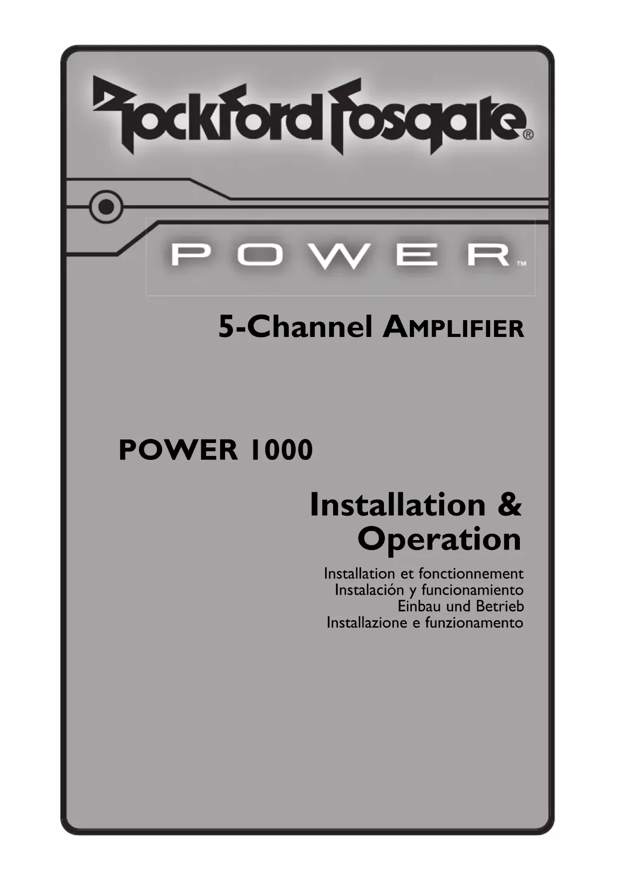 Le symbole accompagnant le mot « AVERTISSEMENT » signale à l'utilisateur la présence d’instructions importantes. Le non-respect de ces instructions causera des blessures graves ou la mort. Le symbole accompagnant l’expression « MISE EN GARDE » signale à l'utilisateur la présence d’instructions importantes. Le non-respect de ces instructions peut causer des blessures ou endommager l’appareil. MISE EN GARDE : pour éviter des blessures et ne pas endommager l'appareil, veuillez lire et suivre les instructions du manuel. Nous espérons que ce système vous procurera du plaisir et non des tracas. MISE EN GARDE : si vous vous sentez incapable d’installer l’appareil vous-même, confiez la tâche à un technicien Rockford Fosgate qualifié. MISE EN GARDE : avant d'entamer l'installation, déconnectez la broche négative (-) de la batterie pour éviter tout risque de blessures, d’incendie ou de dommages à l'appareil. Amplificateur à 5 voies, modèle POWER 1000 Manuel d'installation et d'utilisation Kit de matériel de montage Kit de télécommande de basses Para-Punch avec cordon4 Français