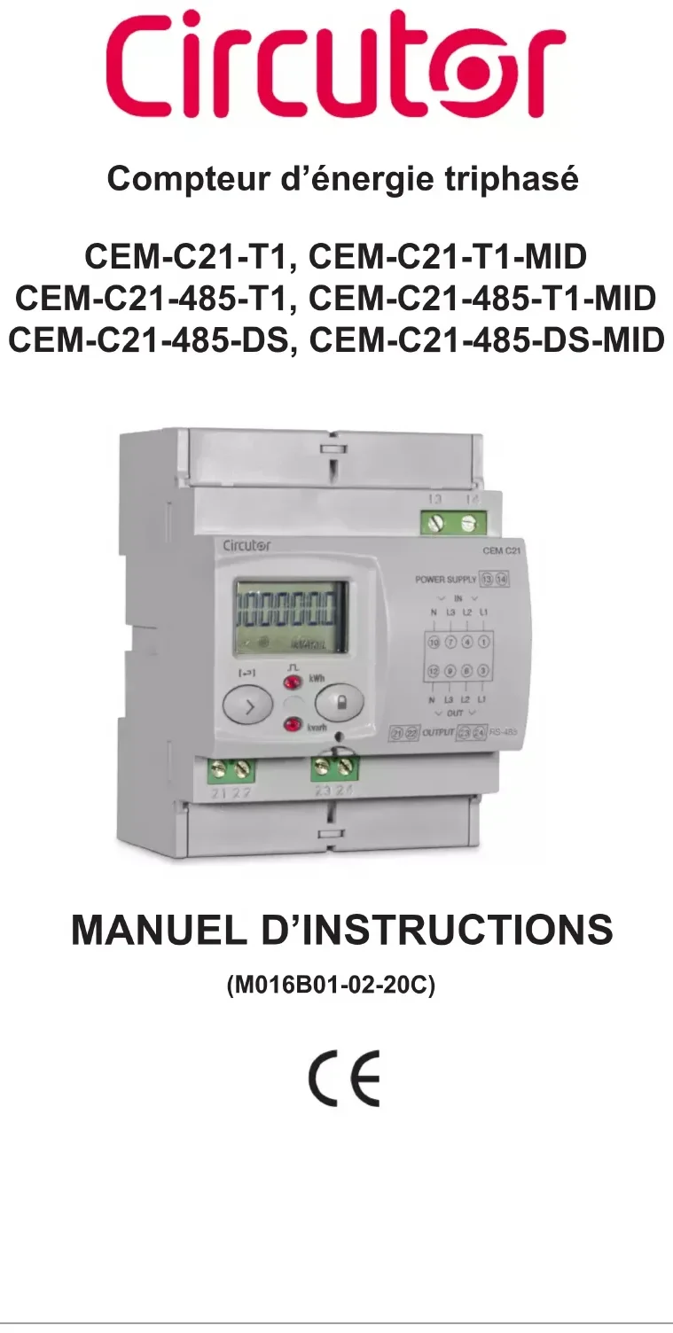 CEM-C21-T1-MID - Compteur d'énergie CIRCUTOR - Notice d'utilisation et mode d'emploi gratuit