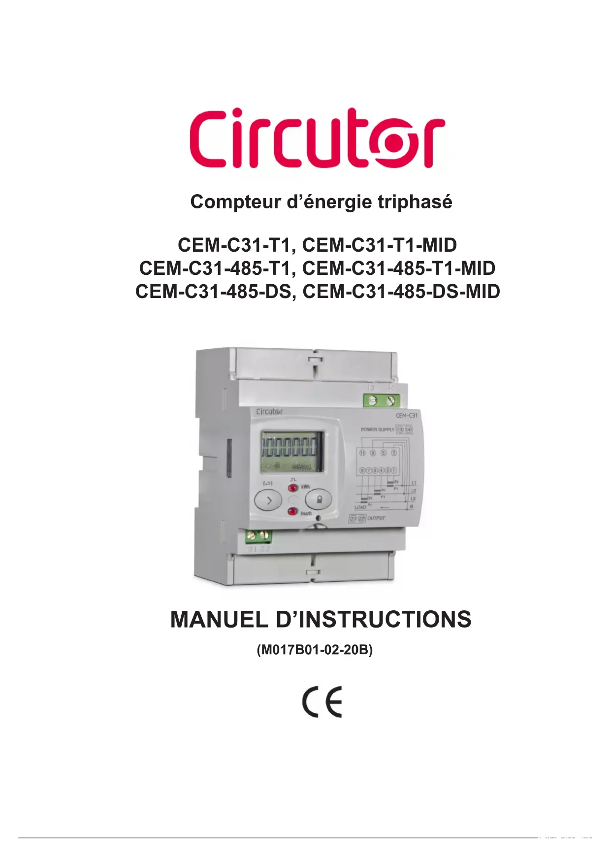CEM-C31-485-T1-MID - Compteur d'énergie CIRCUTOR - Notice d'utilisation et mode d'emploi gratuit