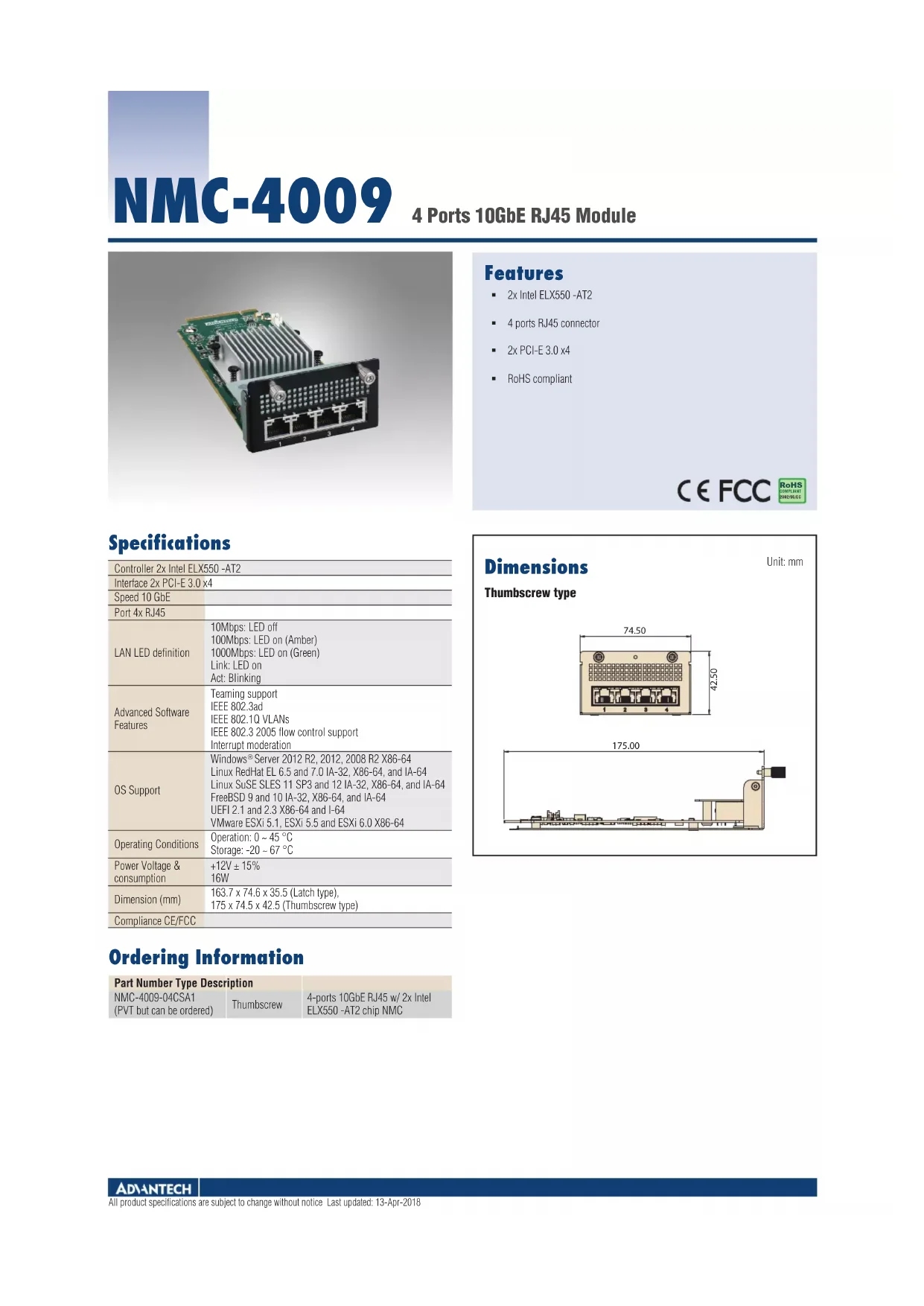 NMC-4009-04CSA1 - Carte réseau / adaptateur Advantech - Notice d'utilisation et mode d'emploi gratuit