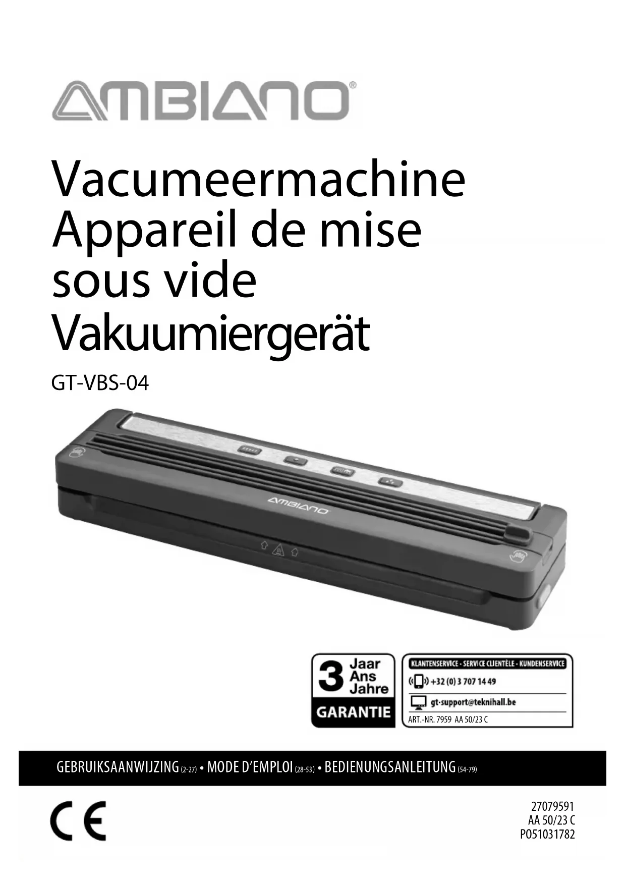 Retrouvez gratuitement la notice de l'appareil GT-VBS-04 Ambiano au format PDF.