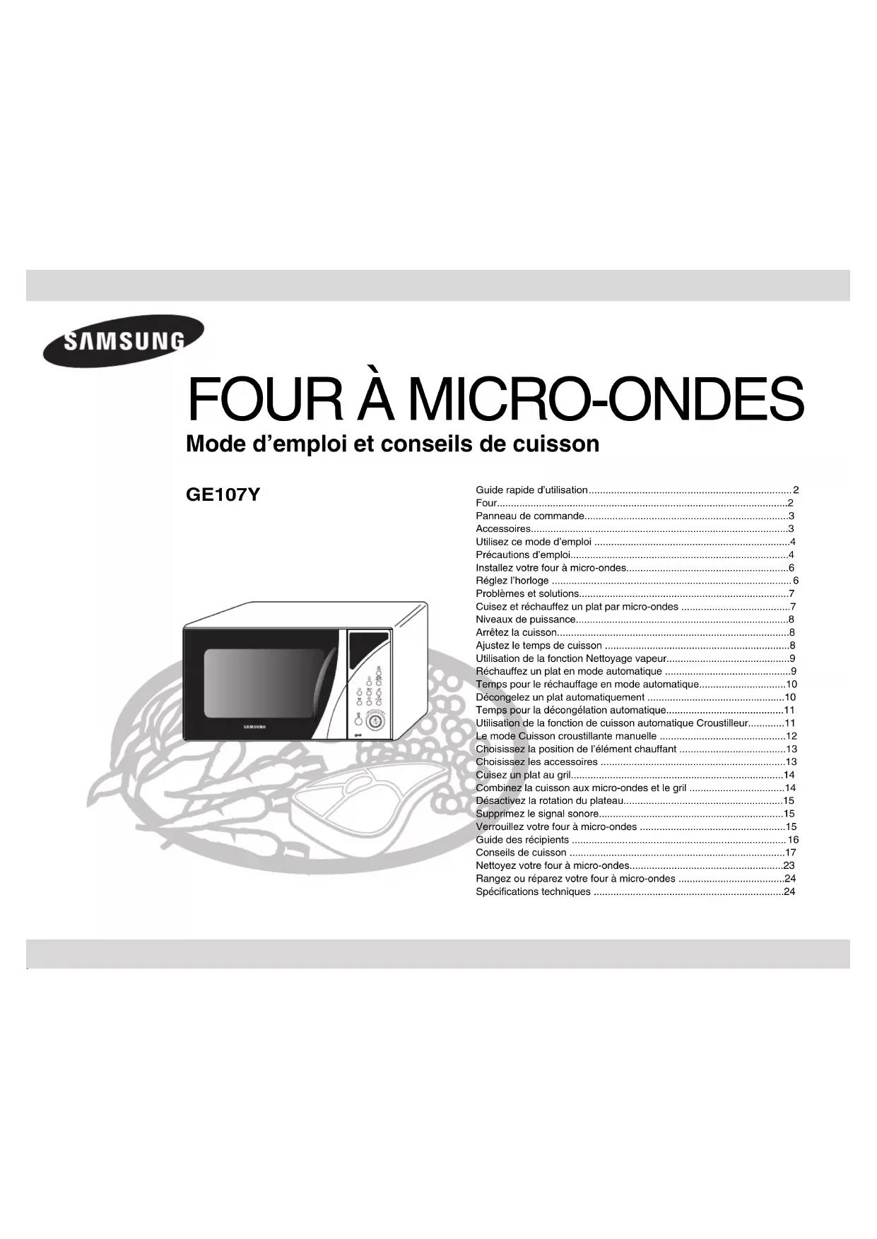 GE107Y - Four SAMSUNG - Notice d'utilisation et mode d'emploi gratuit