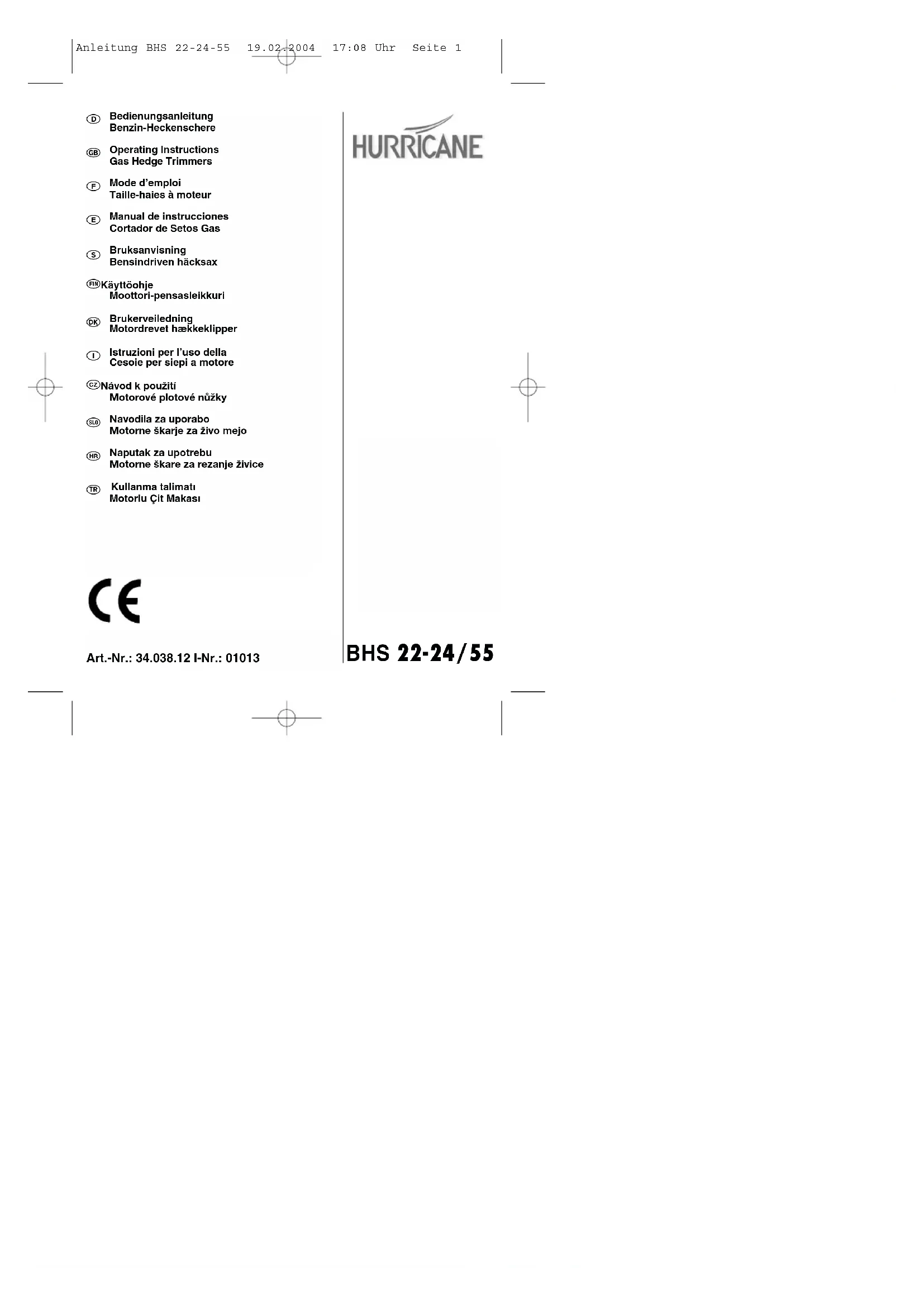 BHS 22-24/55 - Taille-haies Hurricane - Notice d'utilisation et mode d'emploi gratuit