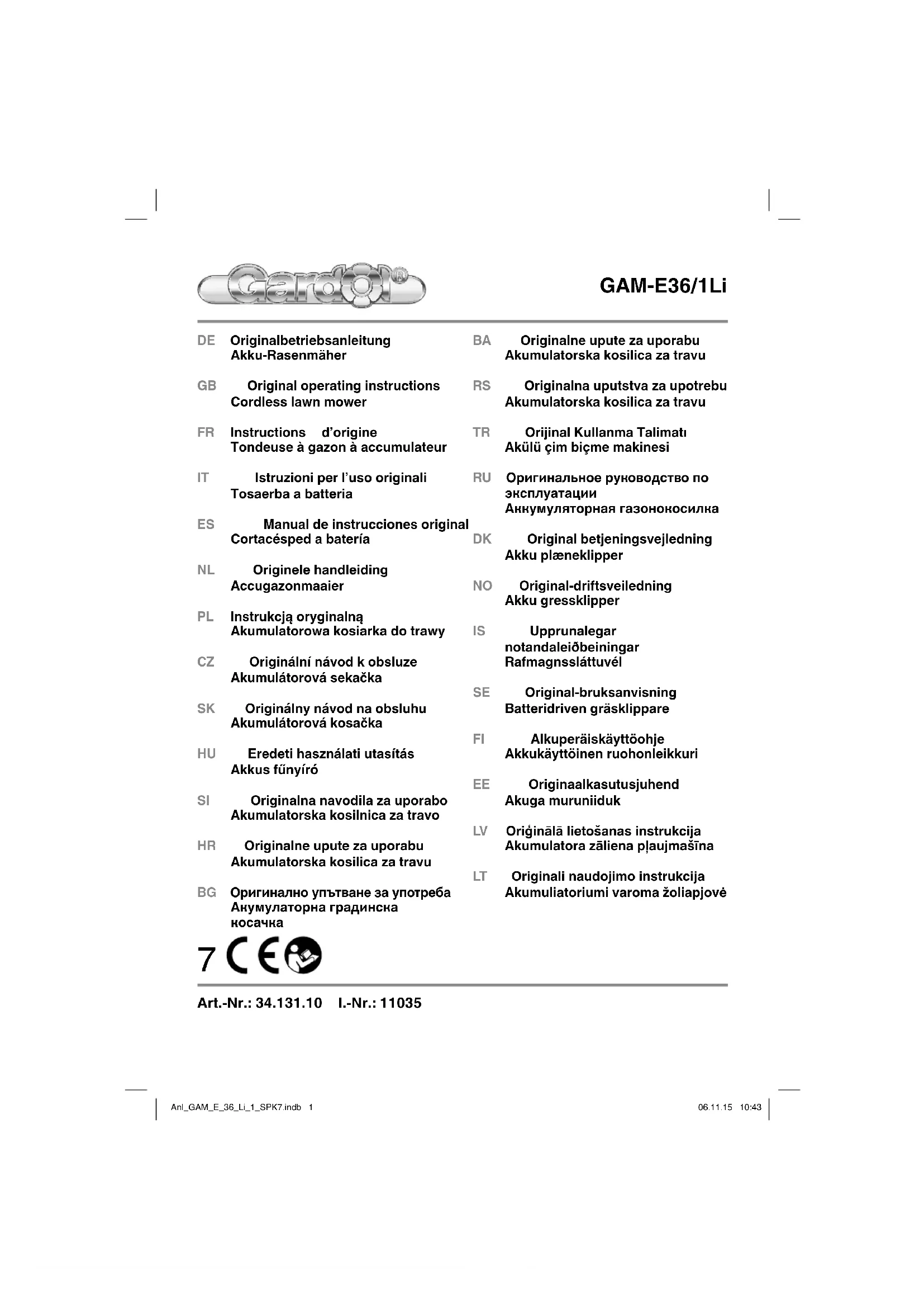 MODE D'EMPLOI GAM-E36/1Li Gardol