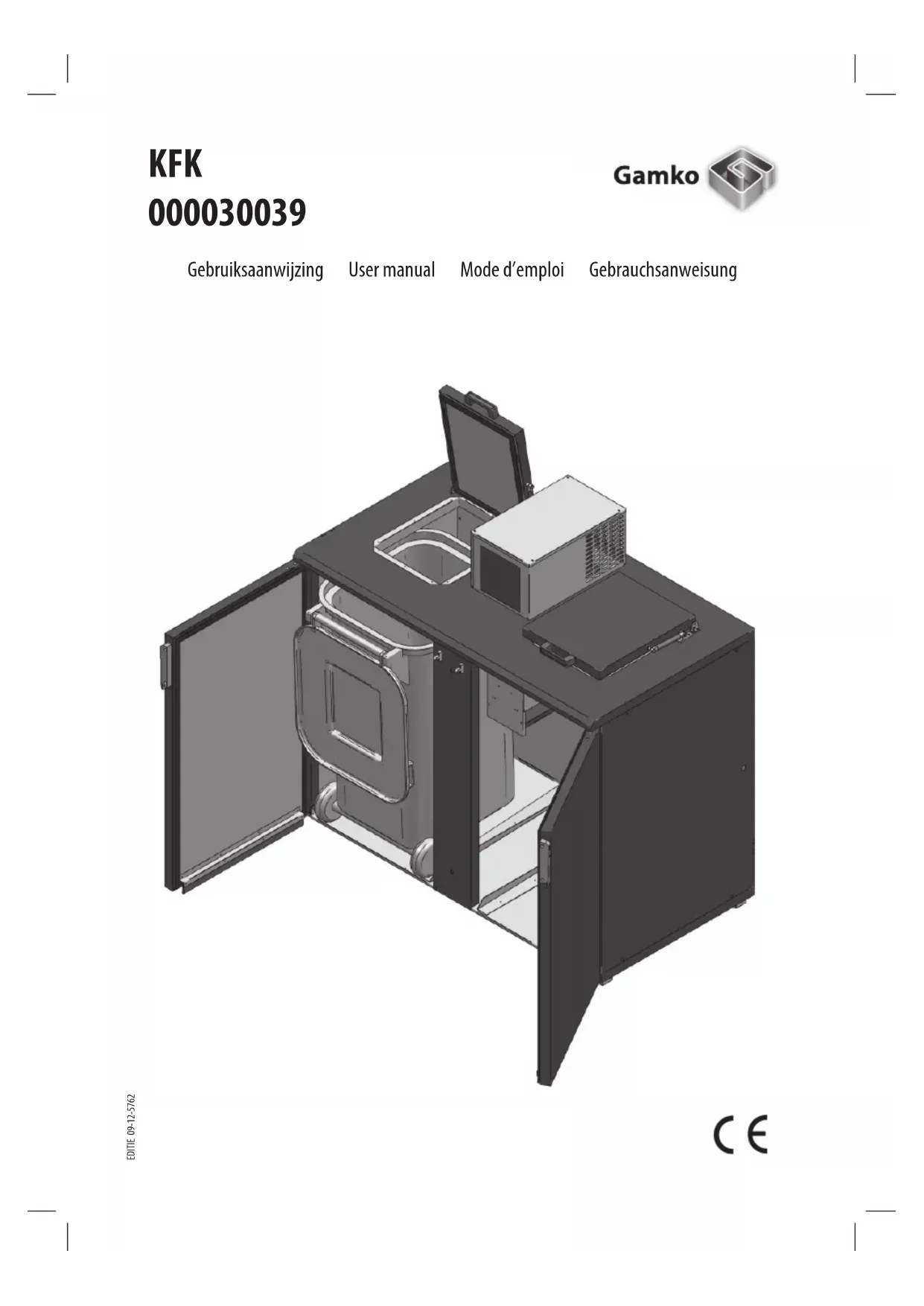 Maintenance Le refroidisseur de poubelles doit être nettoyé régulièrement avec de l’eau tiède et des détergents domestiques doux. Ne jamais utiliser d’abrasifs ou de détergents agressifs. Vous devez nettoyer le condenseur au moins une fois par mois à l’aide d’un aspirateur ou d’un compresseur d’air. Vous devez nettoyer l’intérieur à l’aide d’un appareil haute pression.21 Général Pour toute manipulation dans la partie technique et électrique, assurez-vous que la prise est bien déconnectée. Des pièces peuvent être coupantes dans la partie technique. Donc faites attention si vous devez intervenir à ce niveau. De même, le compresseur peut-être très chaud 90°C. Prenez garde à ce que le compresseur se soit refroidi avant toute opération dans cette zone. Aprês démontage, replacez bien les grilles de protection à leur place. Disfonctionnement Vérier que la prise est bien déconnectée. Symptôme: La température est trop élevée alors que le thermostat est bien réglé Cause: a. Le compresseur n’est pas alimenté b. Le refroidisseur est trop chargé c. La porte n’est pas correctement fermée d. Le thermostat est cassé e. Le compresseur est cassé f. Les grilles d’aération sont obstruées g. Le condenseur est cassé Solution: a. Vérier l’alimentation électrique b. Charger votre refroidisseur plus régulièrement c. Nettoyer ou changer les joints magnétiques d. Appeler votre installateur Gamko e. Appeler votre installateur Gamko f. Dégager les grilles d’aération g. Nettoyez votre condenseur Symptôme: La température est trop basse avec un thermostat correctement réglé Cause: Le thermostat est cassé Solution: Appeler votre installateur Gamko22 DECLARATION CE DE CONFORMITE POUR LES MACHINES (directive 98/37/CEE, Annex II, Chapitre A) Fabricant : Gamko Holding BV Adresse : Mon Plaisir 75 4879 AL, Etten‑Leur Pays‑Bas Déclare ci‑après que Refroidissaur des Poubelles, modèle: KFK** Est conforme aux dispositions de: ‑ La directive relative aux machines ( Directive 98 / 37 / CEE ) ‑ La directive CEM ( Directive 89 / 336 / CEE ) ‑ La directive Basse Tension ( Directive 2006 / 95 / CEE ) ‑ La directive PED des Équipements sous Pressions ( Directive 97 / 23 / CEE ) Etten‑Leur, 31 ‑ 12 ‑ 2009 P. Naaijkens Manager Engineering et Quality Control23 IMPORTANT : LIRE ATTENTIVEMENT LES INSTRUCTIONS AVANT DE PROCÉDER AU MONTAGE. LES PRÉSENTES INSTRUCTIONS DOIVENT ÊTRE CONSERVÉES DANS UN ENDROIT SÛR. LES INFORMATIONS CONTENUES DANS LA PRÉSENTE BROCHURE SONT IMPORTANTES EN CAS DE TRANSPORT OU DE RECYCLAGE DE L’APPAREIL À LA FIN DE LA DURÉE DE SERVICE DE L’APPAREIL. Gamko Holding BV est attentif à la sauvegarde de l’environnement et se conforme en tous points au dispo‑ sitions de la Directive 2002 / 96 / CE , désignée par WEEE , autrement dit la Directive relative aux Déchets d’Équipements Électriques et Électroniques. Le produit est conforme à la directive 2002 / 96 / CE. À la n de sa durée de service , le produit , qui doit être traité séparément des déchets domestiques , doit être remis à un centre de collecte séparée des équipements électriques et électroniques. La directive 2002 / 96 / CE a pour objectif de faire face au volume toujours croissant d’équipements électriques et électroniques , de faire augmenter le recyclage des équipements électriques et électroniques ( « EEE » ) et enn de restreindre le volume total de déchets d’EEE ( « WEEE » ) destinés à une évacuation nale. Le symbole représentant une poubelle biée d’une croix signie que le produit en question est sujet au domaine d’application de cette directive. Il appartient à l’utilisateur de coner le produit à un centre spécique de collecte , comme cela est prévu par la législation locale ou par le distributeur. Dans le cas de l’installation d’un nouveau produit , l’ancien produit WEEE peut alors directement être collecté par le distributeur. Le fabricant , l’importateur et le distributeur sont responsables de la collecte et du traitement des déchets qu’ils ont directement collectés ou qui l’ont été par le biais d’un centre de collecte. Toute violation de la Directive précitée s’accompagnera de sanctions , dans tous les pays. Gamko Holding BV suit généralement l’« interprétation du CECED » ( Comité Européen des Constructeurs d’Equipements électriques Domestiques ) selon laquelle la législation relative aux WEEE s’applique aux climatiseurs portables , déshumidicateurs , climatiseurs de fenêtre , systèmes Split jusqu’à 12 kW , frigos et compartiments congélateurs encastrables. Il est toutefois possible de constater qu’il existe des diérences entrent les législations des diérents Etats membres. Dans le cas où certains produits ne seraient pas visés par la législation nationale concernant la liste des produits WEEE , c’est la législation nationale qui doit être respectée , les directives WEEE ne devant pas être appliquées aux produits n’entrant pas dans le domaine d’application de ces règlementations nationales. La directive ne s’applique pas aux produits vendus à en dehors de la Communauté Européenne. Dans le cas où le produit serait vendu à l’extérieur de la Communauté Européenne , il ne sera pas nécessaire de s’adapter à la directive WEEE , il faudra par contre garantir que la législation locale a bien été respectée. Pour obtenir des informations complémentaires , il faut s’adresser au service local de collecte des déchets , au commerçant / distributeur / installateur chez qui le produit à été acheté ou bien directement à Gamko. Dispositions de la directive WEEE(0110) Gamko Holding BV Mon Plaisir 75, 4879 AL Etten‑Leur P.O. Box 274, 4870 AG Etten‑Leur The Netherlands www.gamko.com