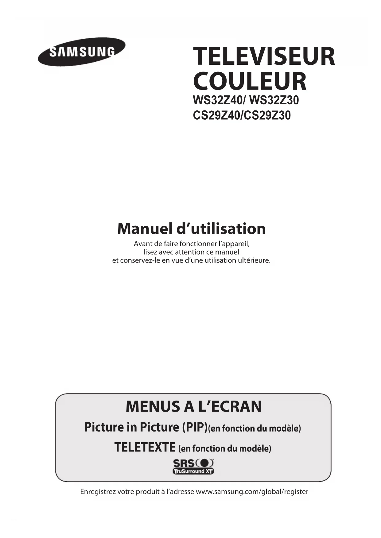 TELEVISEUR COULEUR WS32Z40/ WS32Z30 CS29Z40/CS29Z30 Manuel d’utilisation Avant de faire fonctionner l’appareil,lisez avec attention ce manuelet conservez-le en vue d’une utilisation ultérieure.
