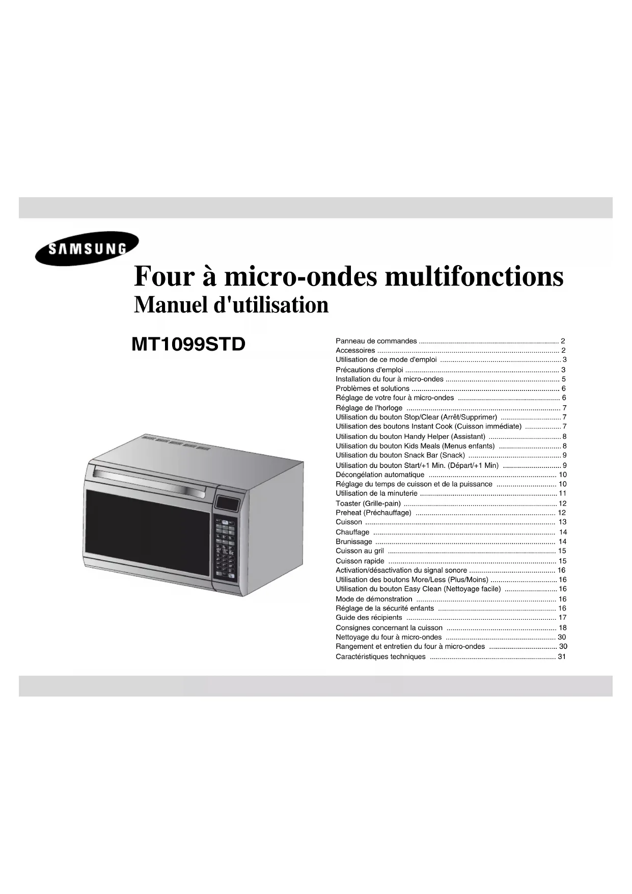 MT1099STD - Micro-ondes SAMSUNG - Notice d'utilisation et mode d'emploi gratuit
