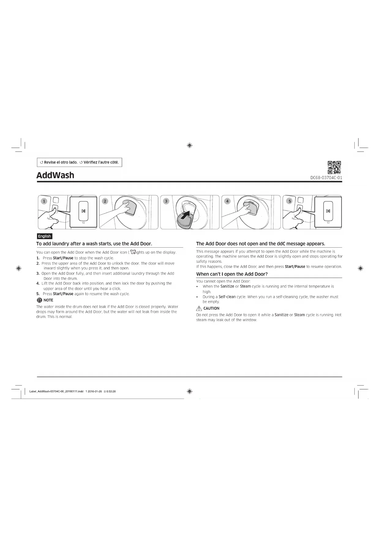 Revise el otro lado. Vériez l’autre côté. AddWash