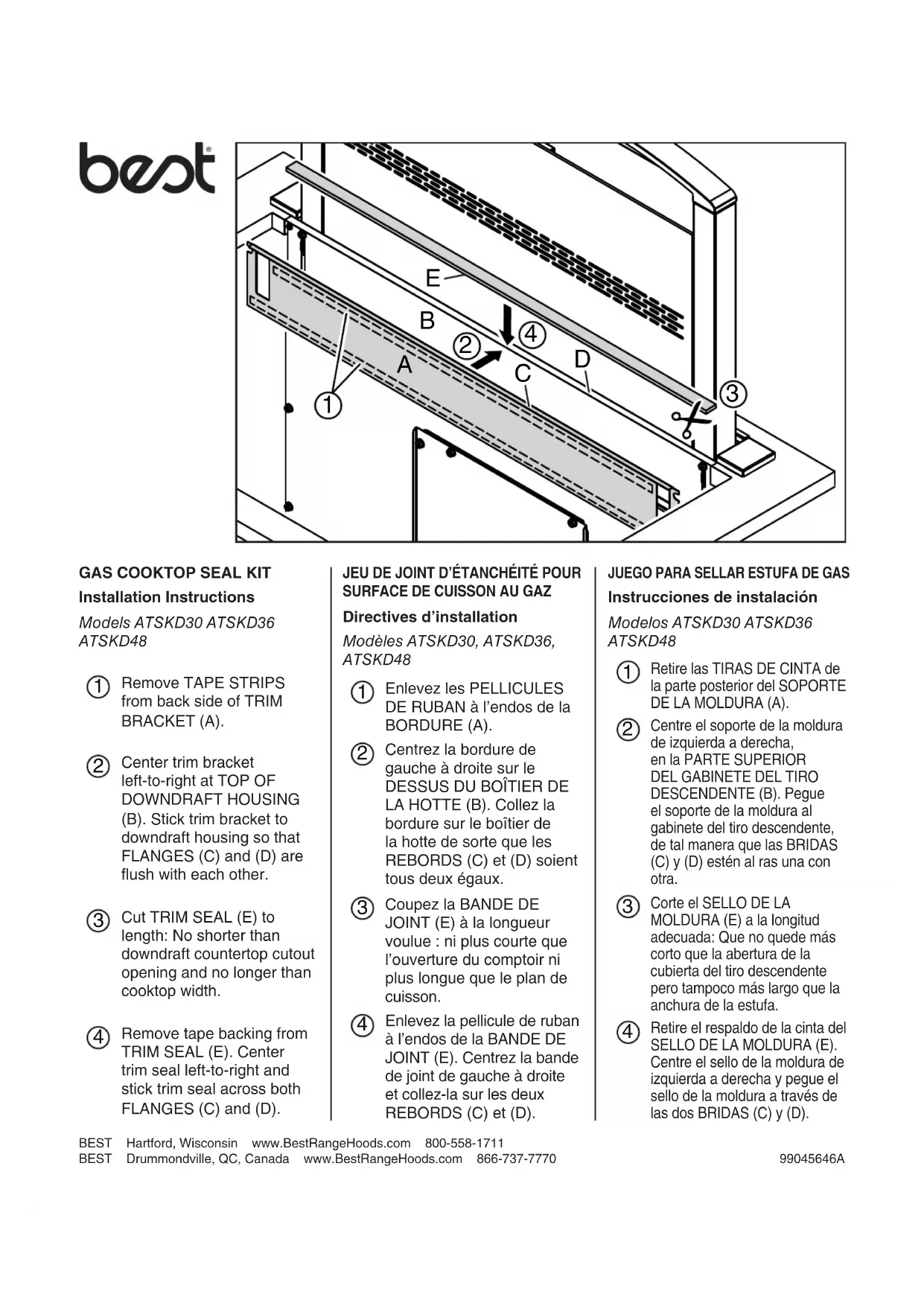 Directives d’installation Modèles ATSKD30, ATSKD36, ATSKD48