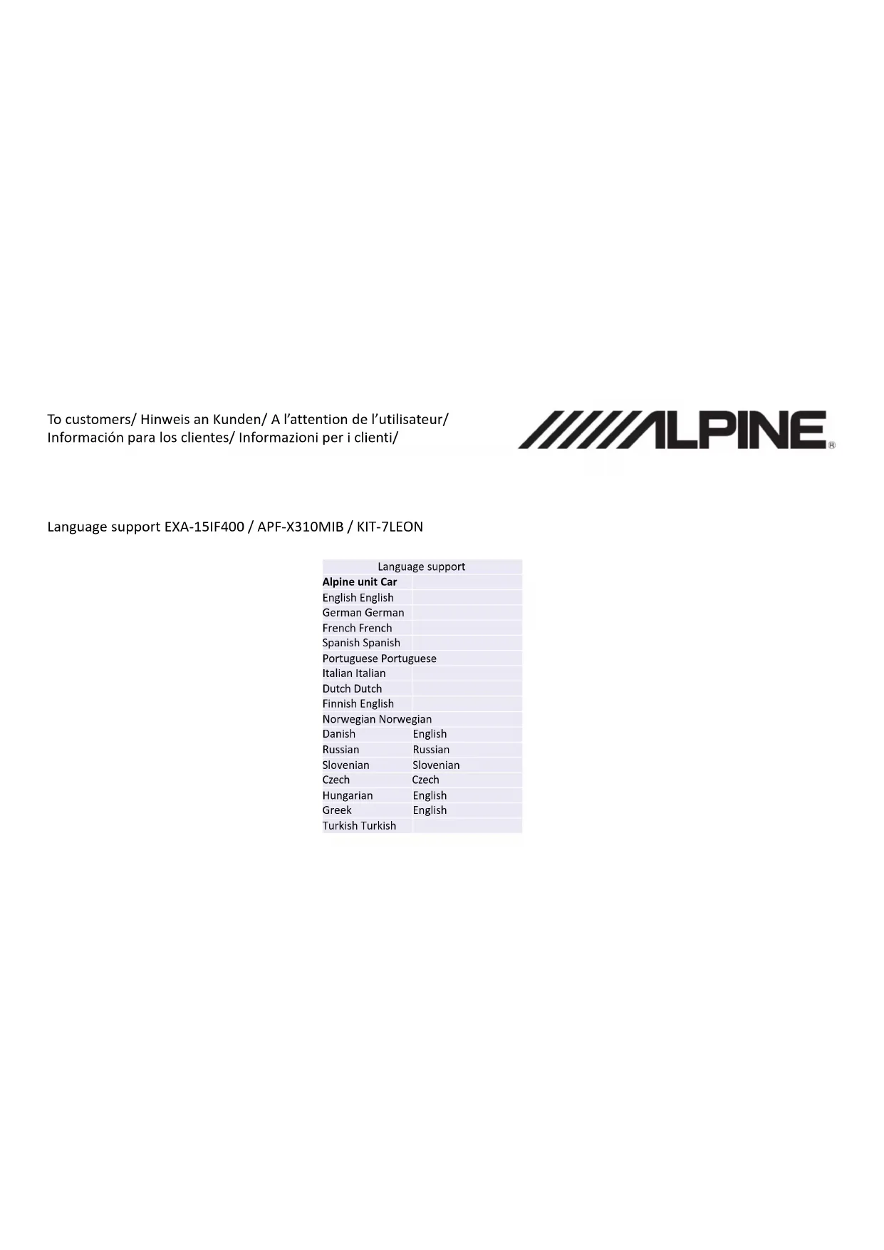 Retrouvez gratuitement la notice de l'appareil KIT-7LEON ALPINE au format PDF.