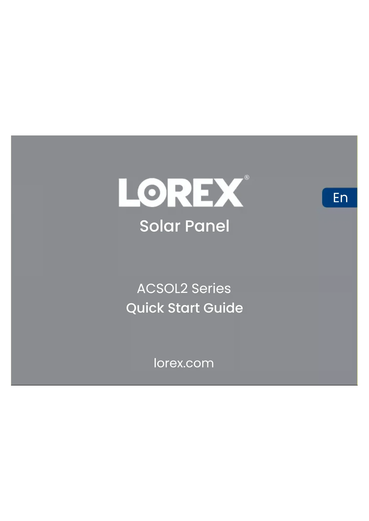Please see our full Terms of Service and Limited Hardware Warranty Policy at lorex.com/warranty. Panneau solaire Guide de démarrage rapide SérieACSOL2 lorex.comPanneau solaire Guide de démarrage rapide SérieACSOL2 lorex.com FrContenu de l’emballage Outils à fournir par l’utilisateur