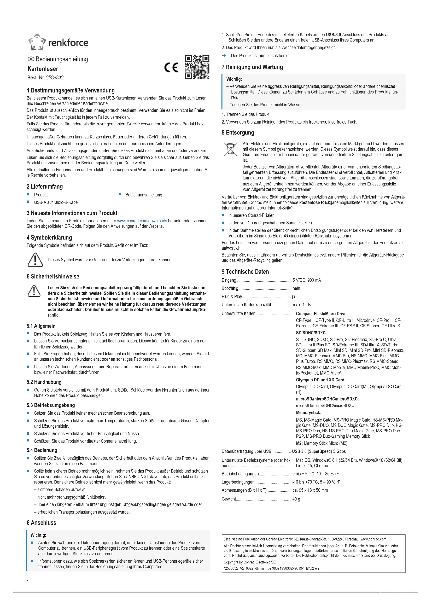 RF-PCR-350 - Lecteur de cartes mémoire Renkforce - Notice d'utilisation et mode d'emploi gratuit