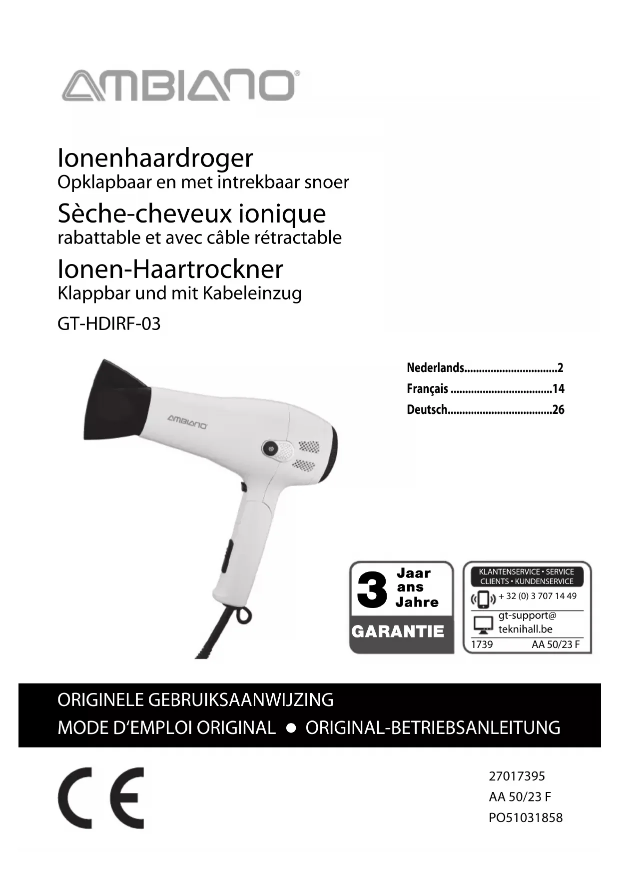 GT-HDIRF-03 - Sèche-cheveux Ambiano - Notice d'utilisation et mode d'emploi gratuit