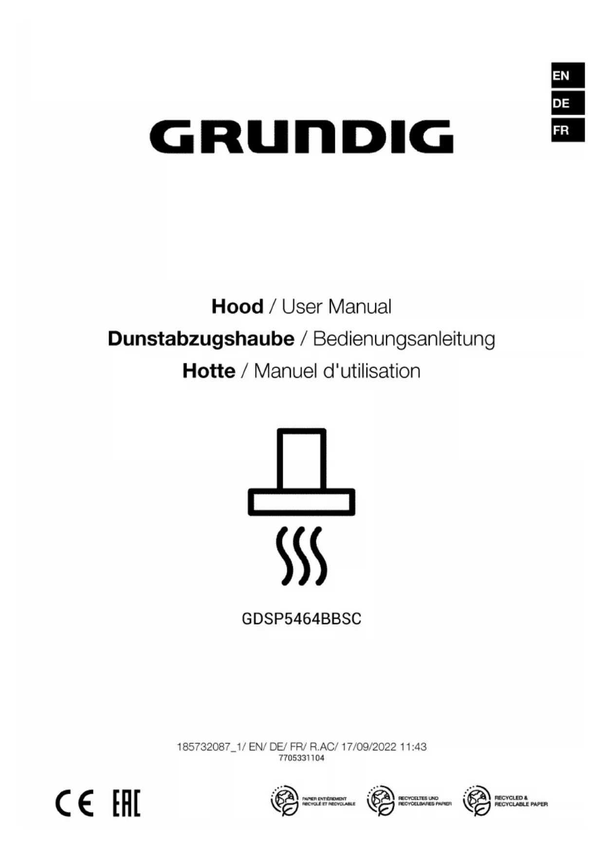 GDSP5464BBSC - Hotte GRUNDIG - Notice d'utilisation et mode d'emploi gratuit