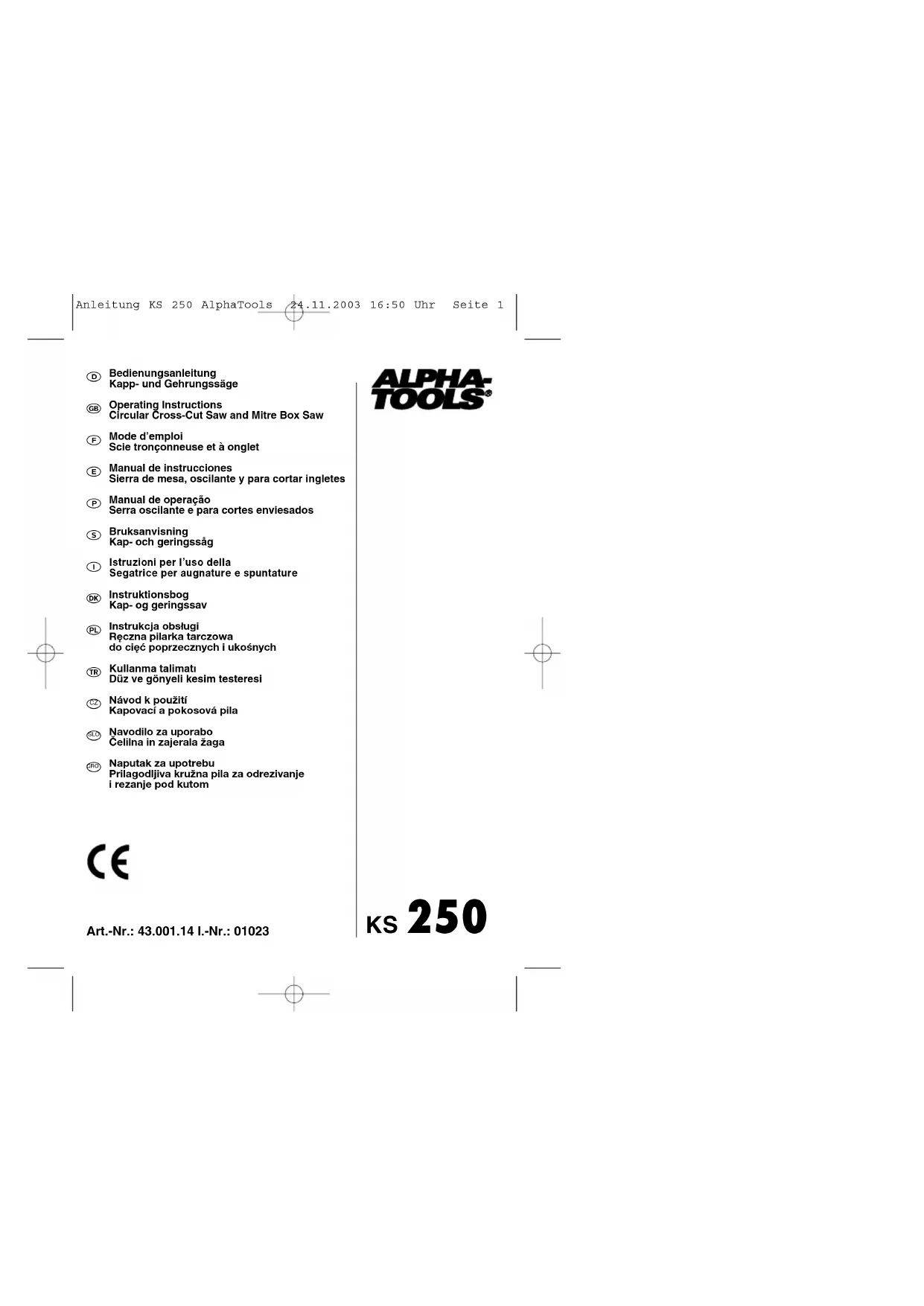 MODE D'EMPLOI KS 250 Alpha Tools