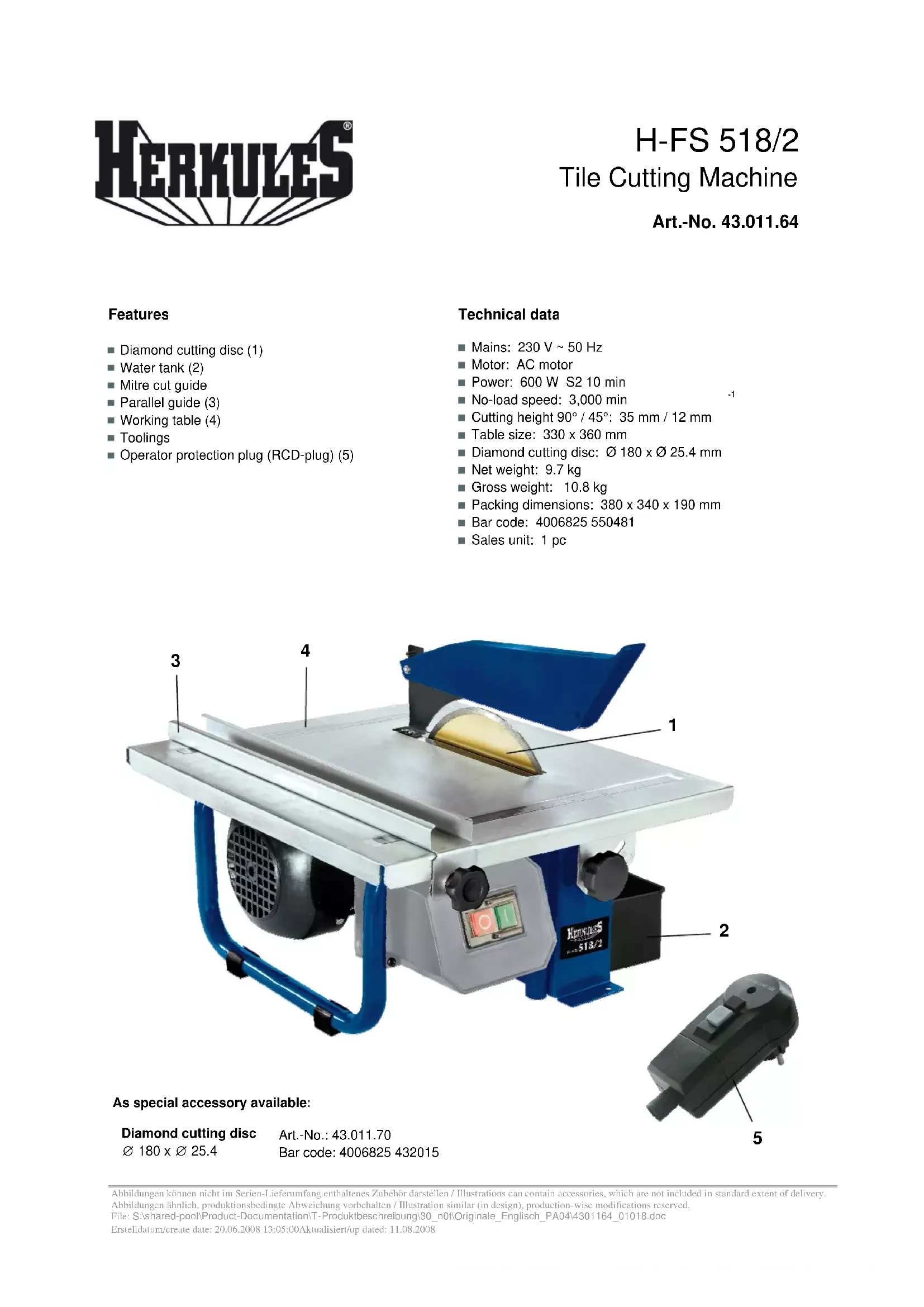 H-FS 518/2 - Scie Herkules - Notice d'utilisation et mode d'emploi gratuit
