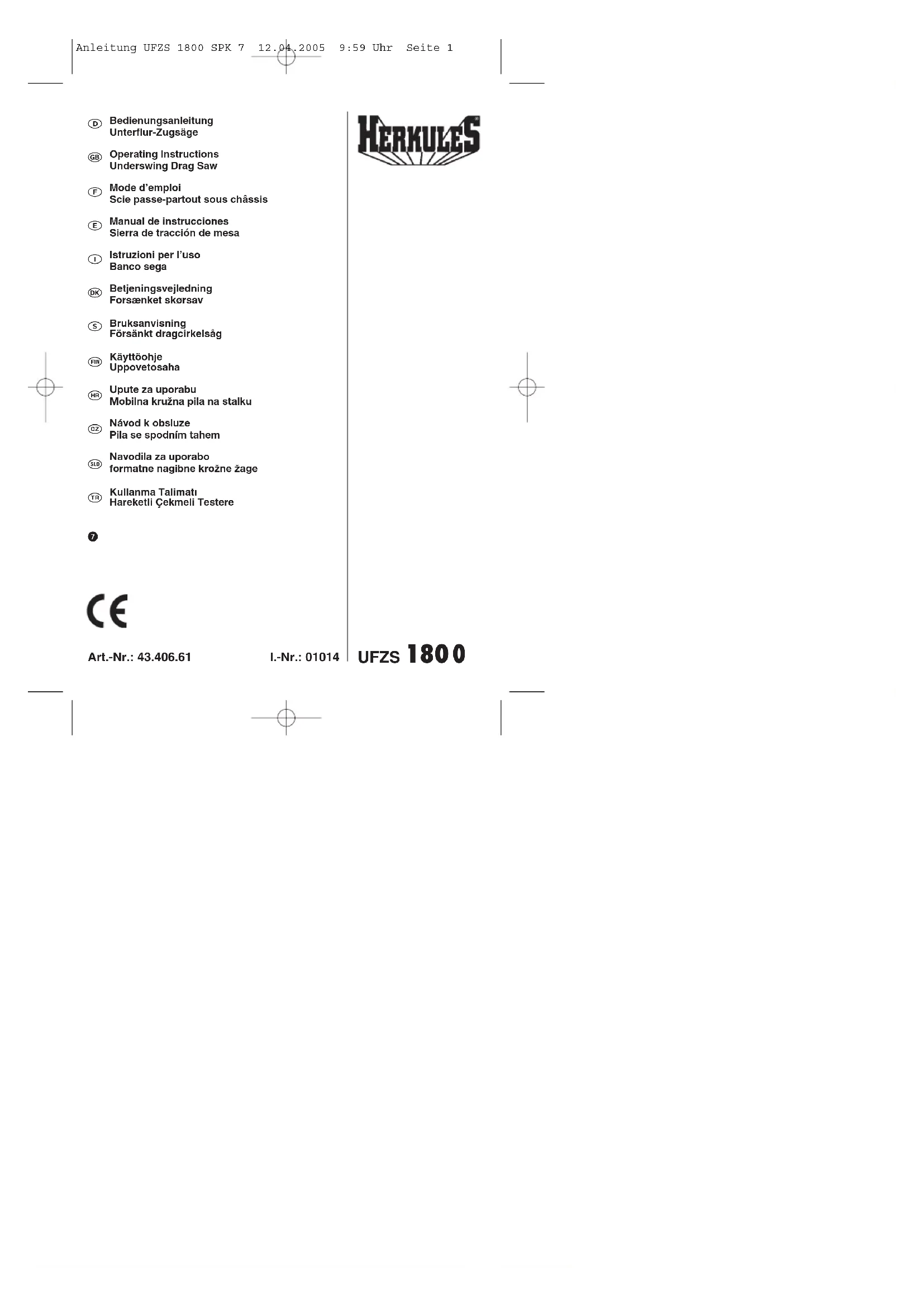 UFZS 1800 - Scie Herkules - Notice d'utilisation et mode d'emploi gratuit