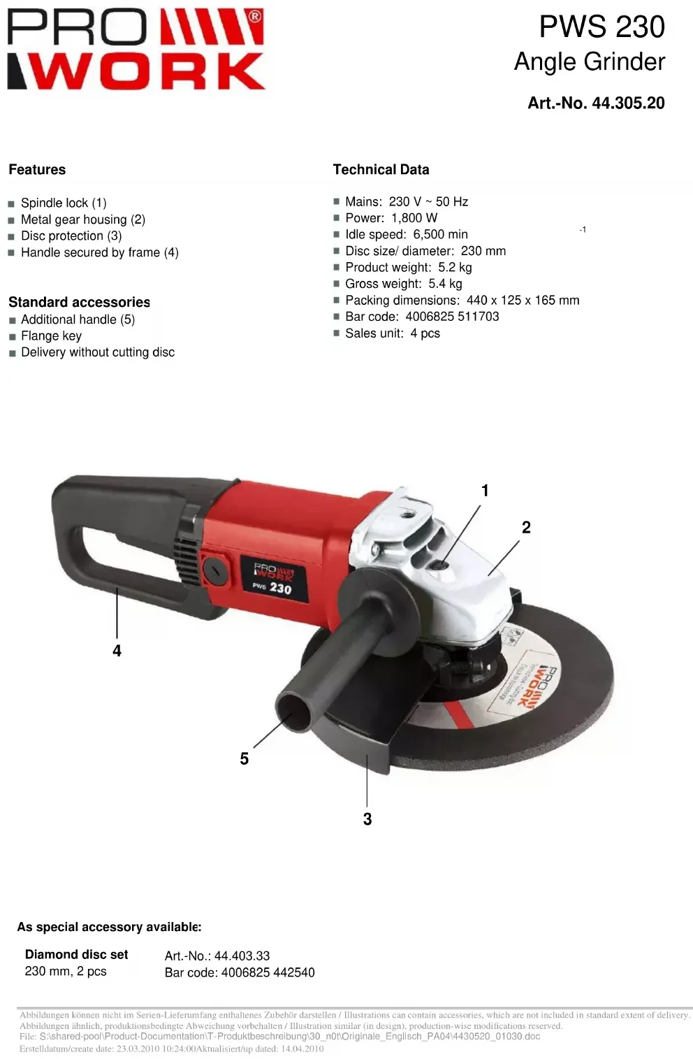 PWS 230 - Broyeur Prowork - Notice d'utilisation et mode d'emploi gratuit
