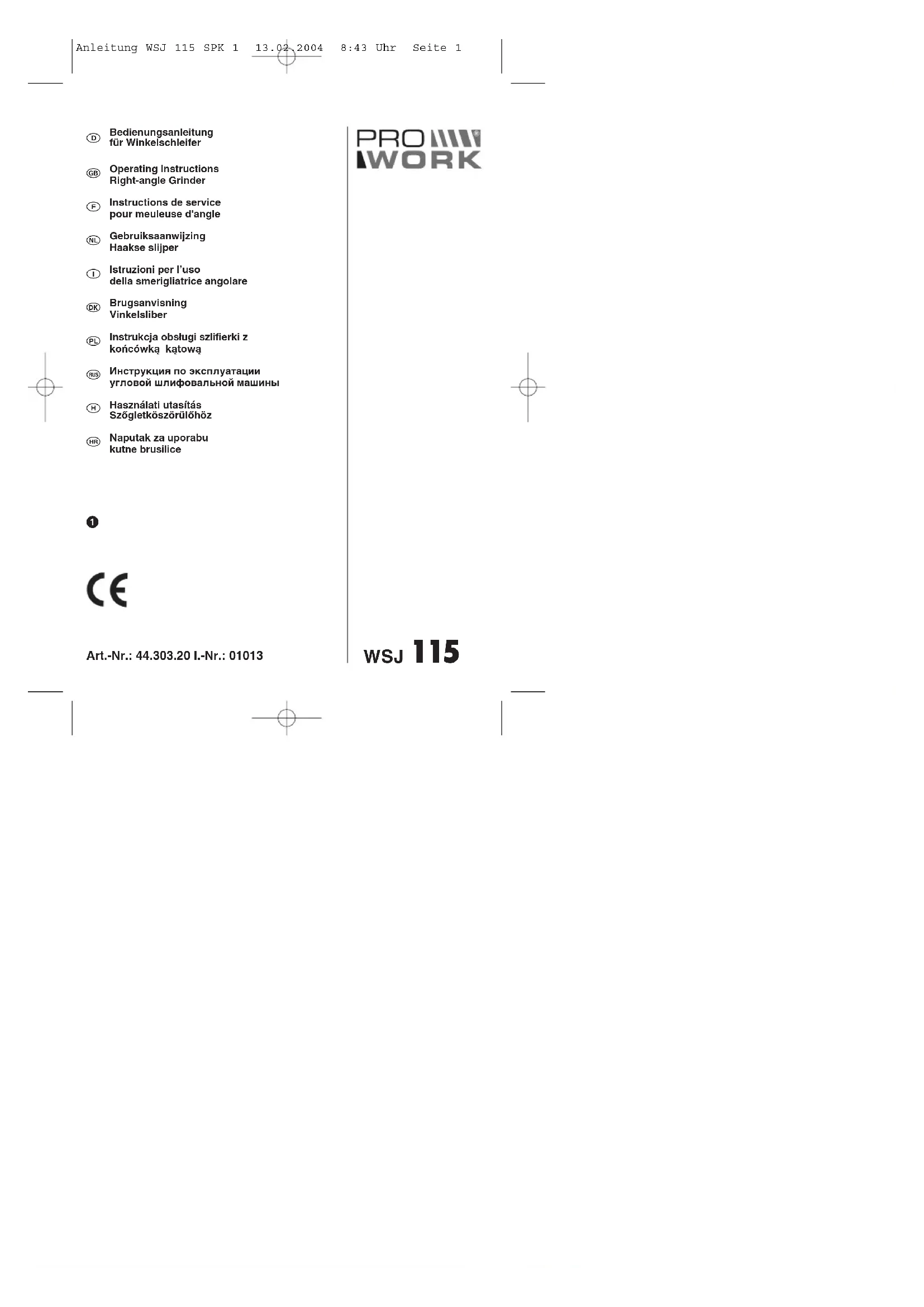 MODE D'EMPLOI WSJ 115 Prowork