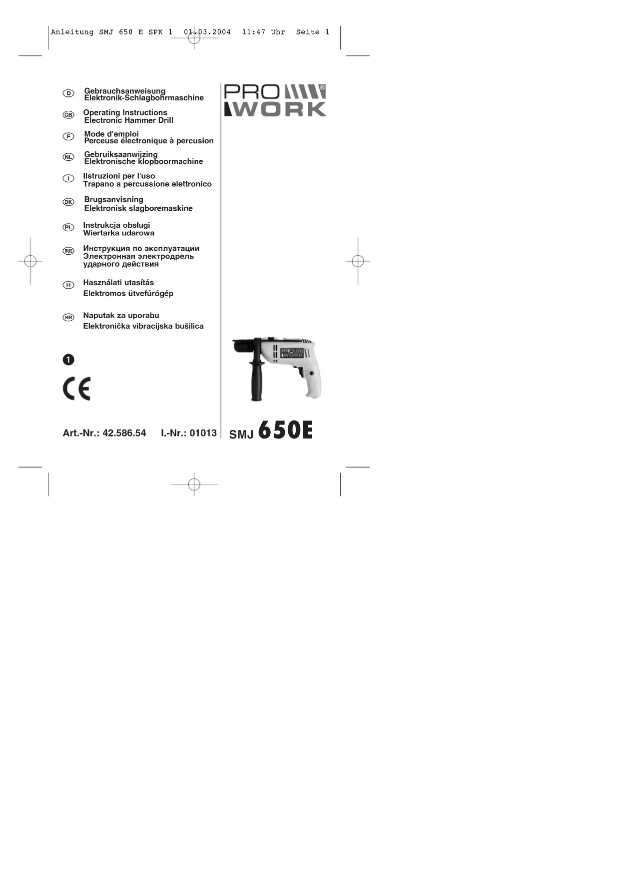 SMJ 650 E - Perceuse Prowork - Notice d'utilisation et mode d'emploi gratuit