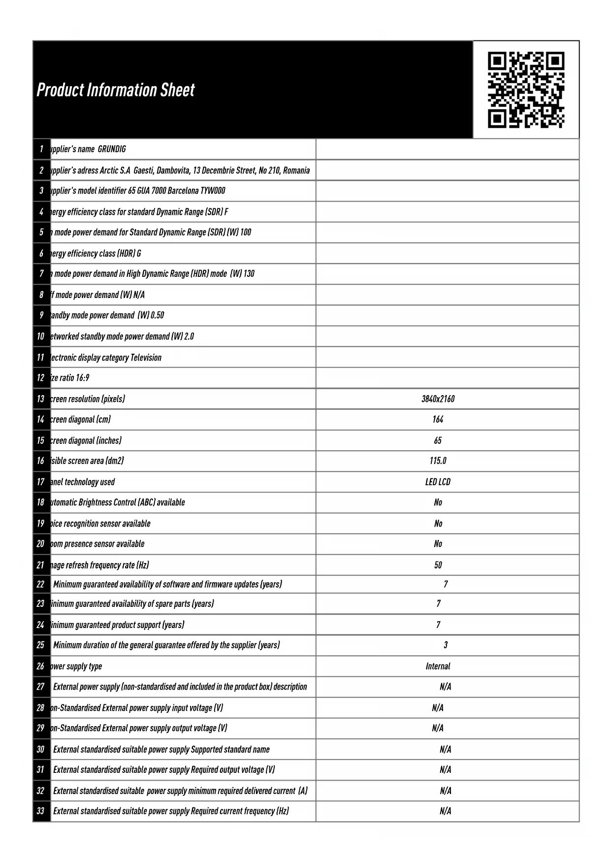 GRUNDIG et reprennez votre appareil électronique en main. Sur cette page sont publiés tous les documents nécessaires à l'utilisation de votre appareil Barcelona 65 GUA 7000 de la marque GRUNDIG.